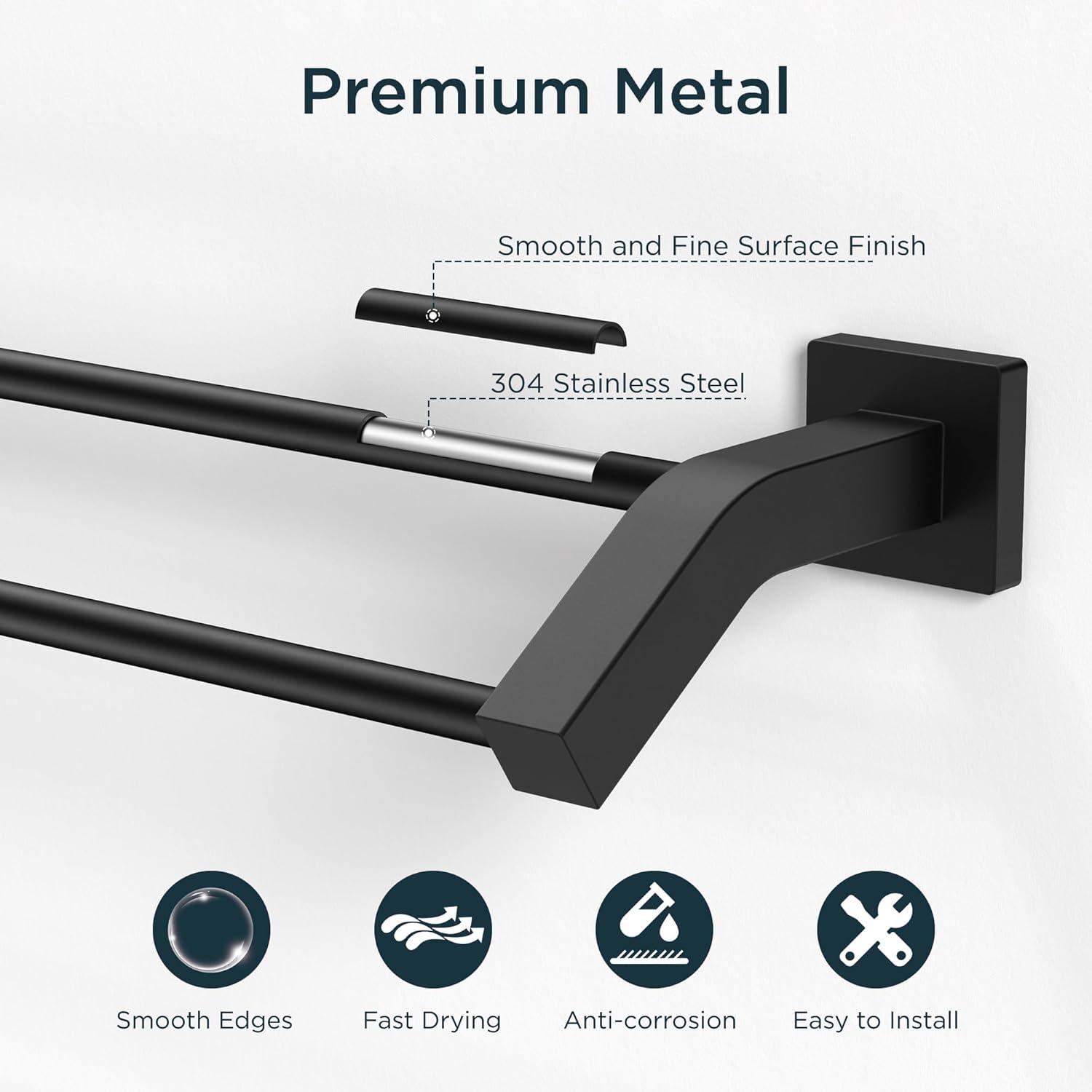 FORIOUS Double Towel Bar, 24 Inch Dual Towel Racks for Bathroom, Heavy Duty SUS304 Stainless Steel Towel Holder Rail Wall Mount, Includes Wall Mounting Hardware, Matte Black(Stainless Steel)