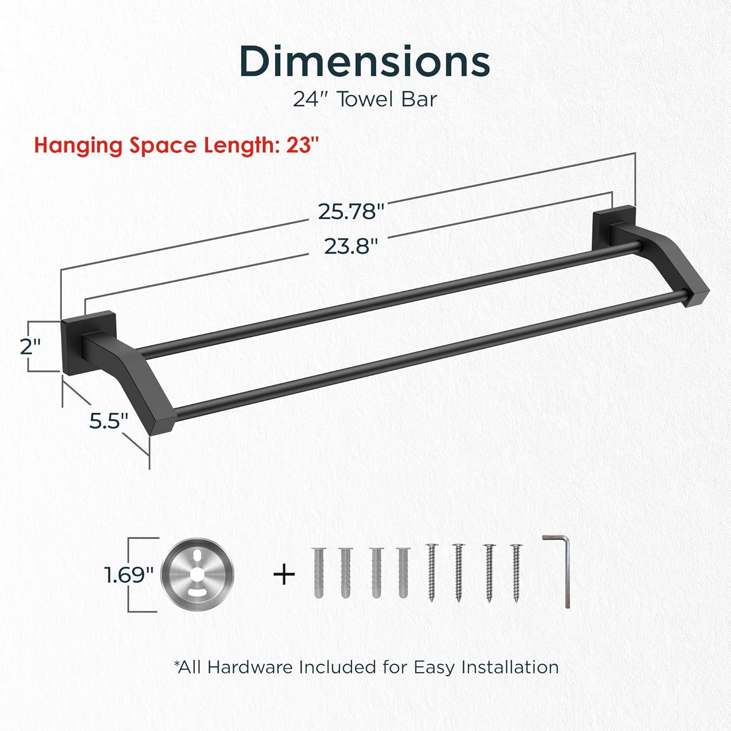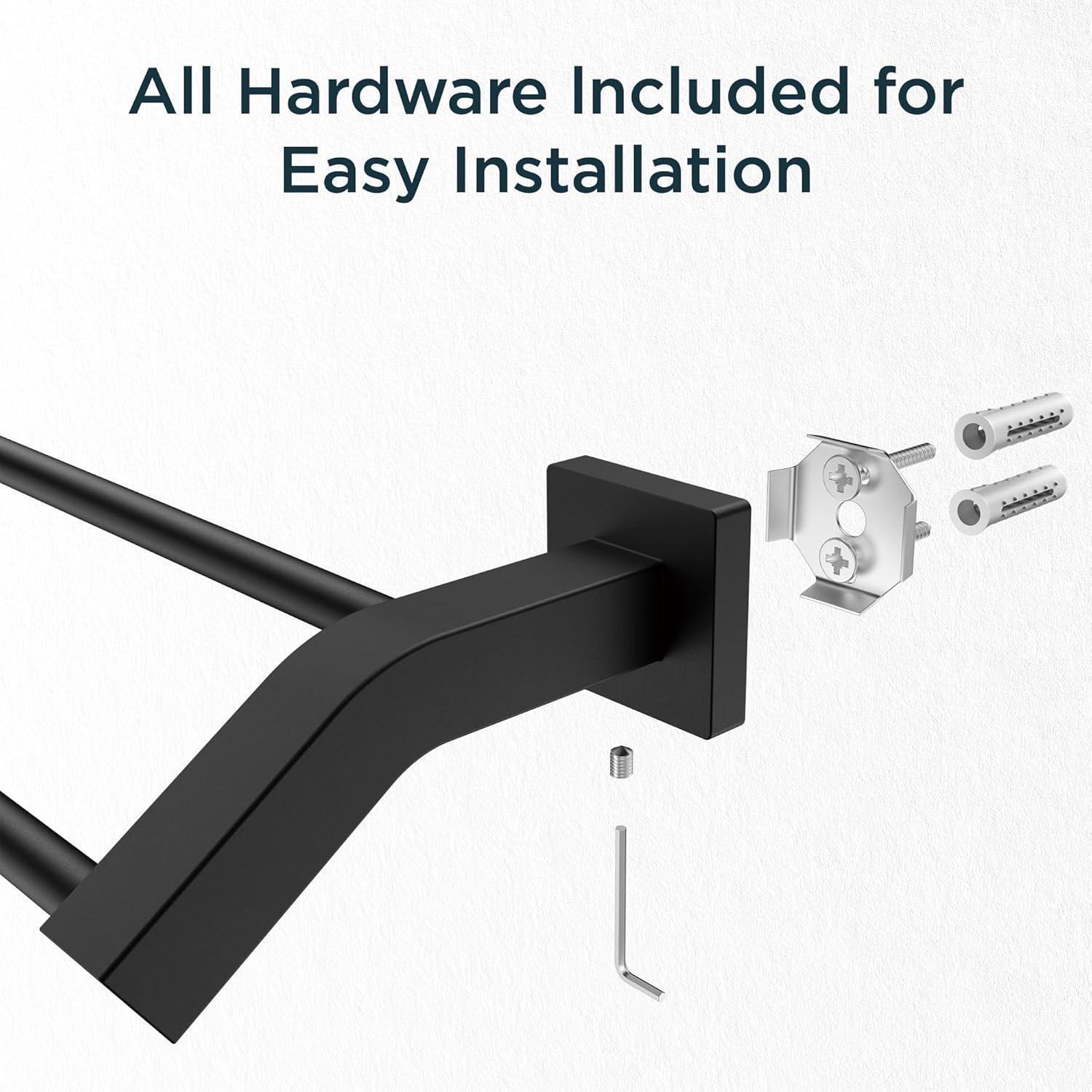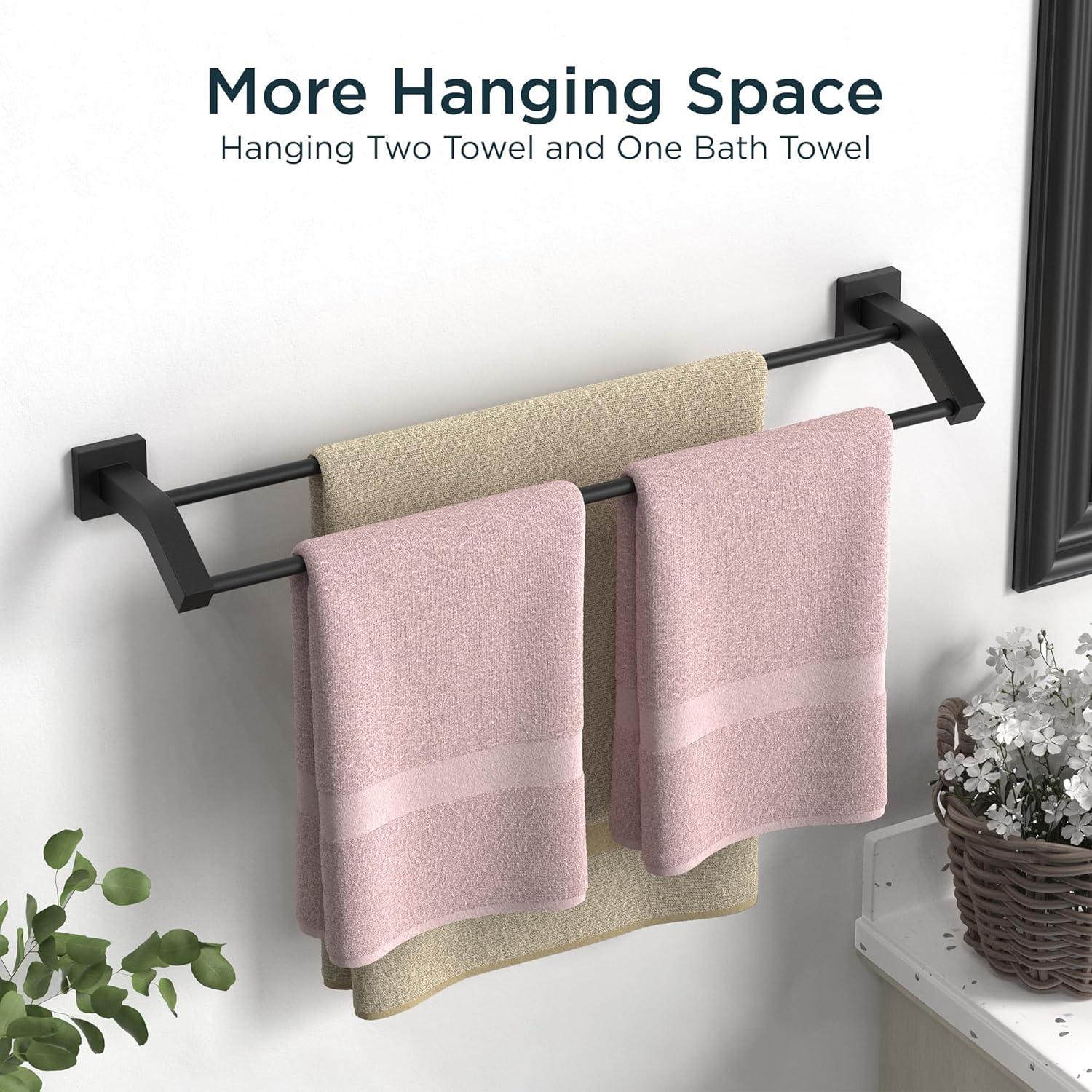 Space Saving Design: The square double towel bar 24 Inch features a space-efficient design that allows you to hang more towels with ease. With ample clearance between the two bars, towels dry faster and are easily accessible