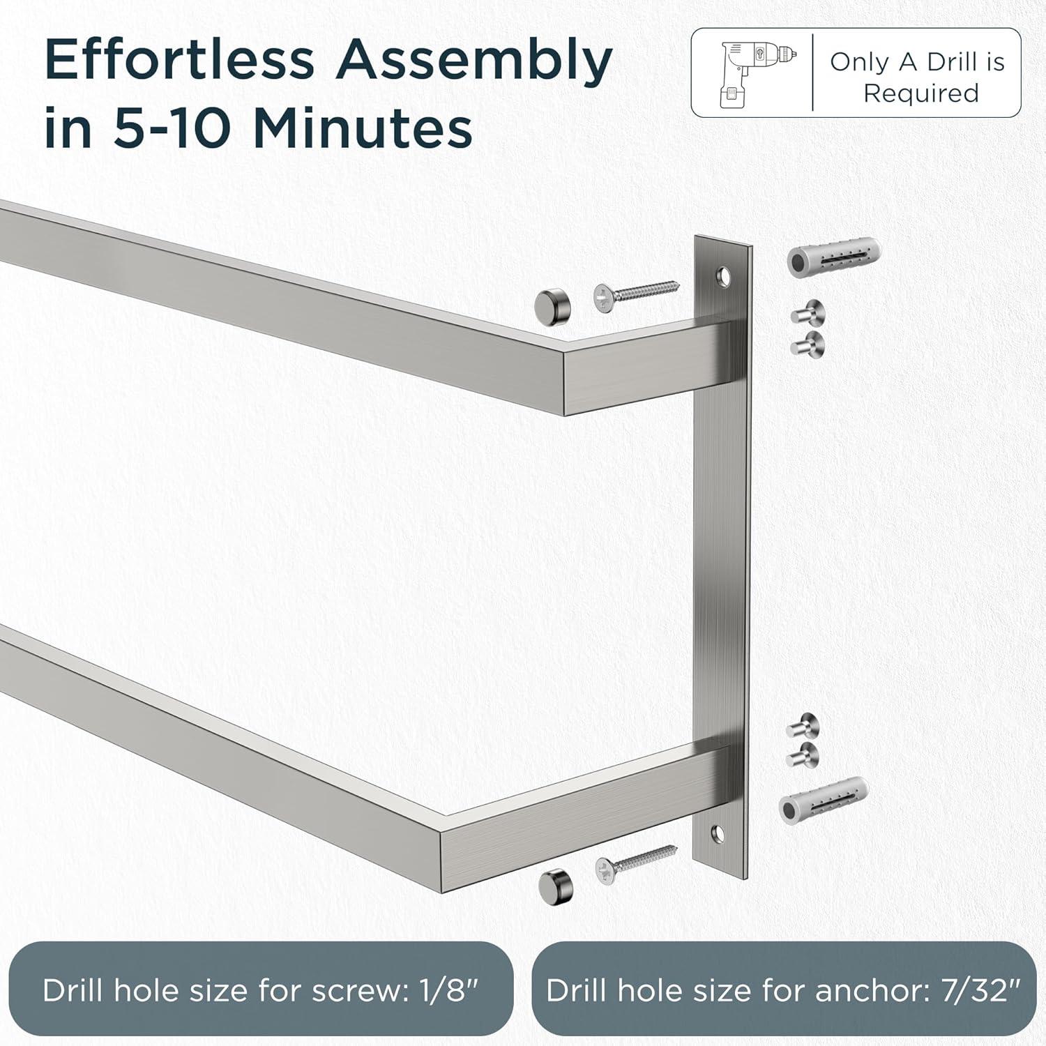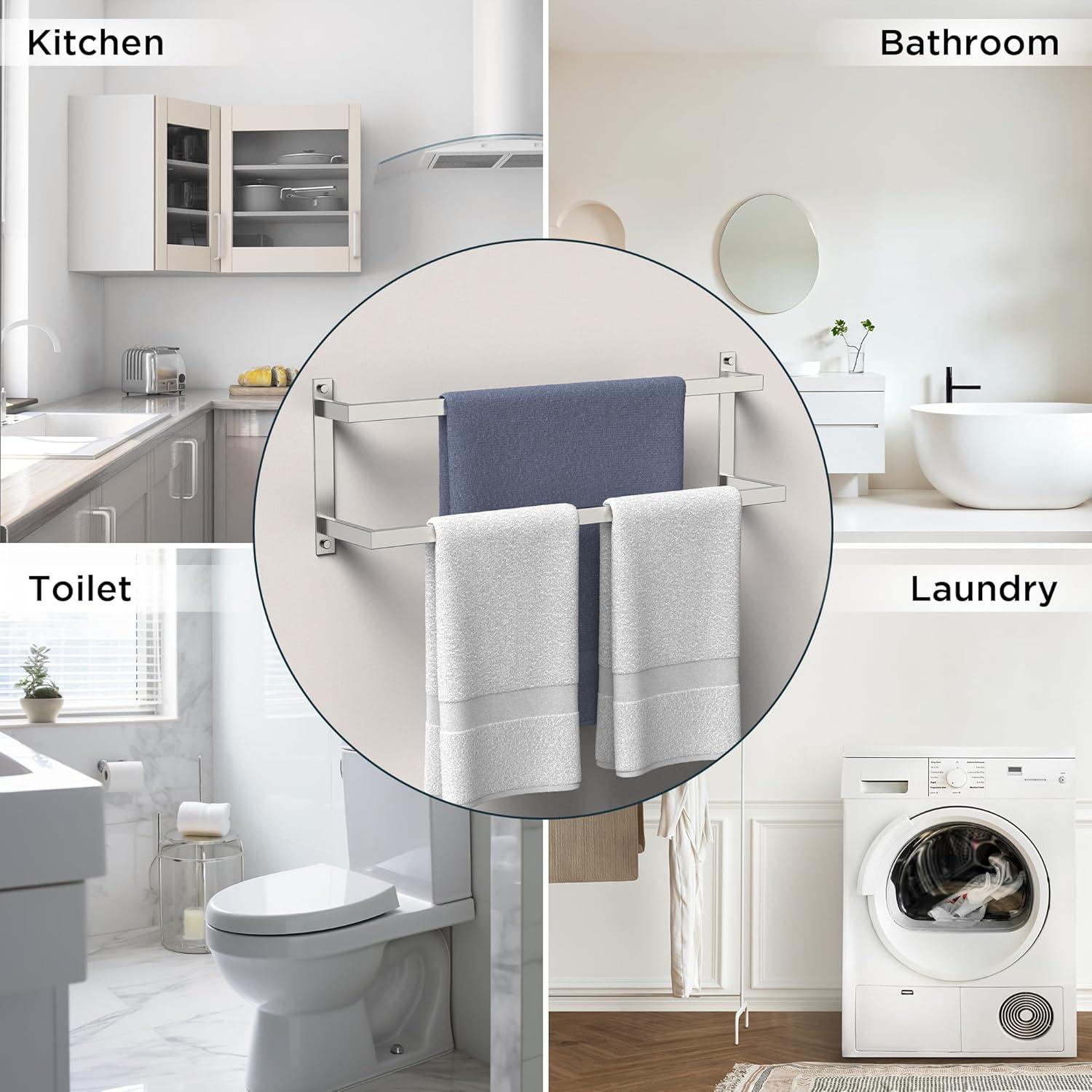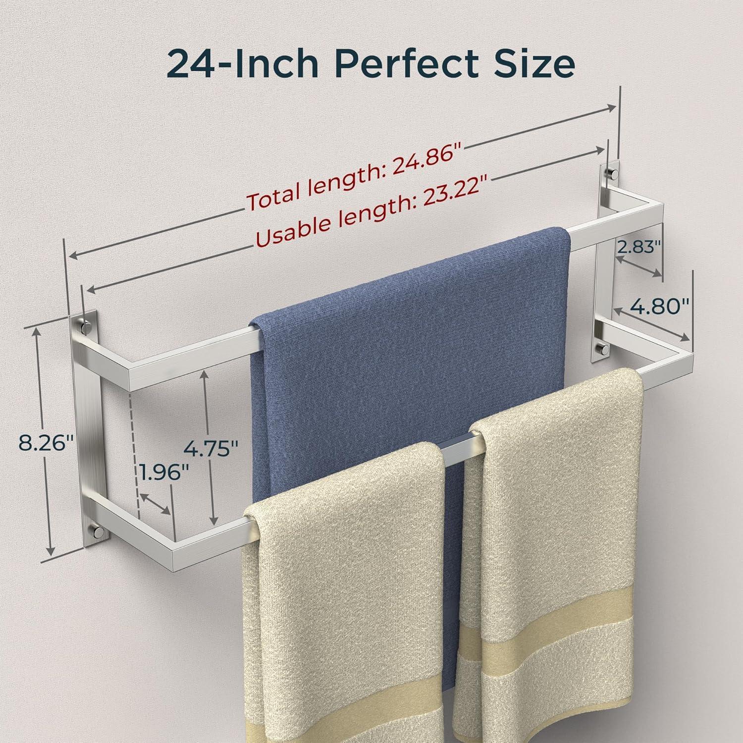 24-Inch | 2-Tier Towel Bar: FORIOUS 24-inch towel bar features 2-tier rods with generous space between them for easy towel access and promotes faster drying. It can easily hold multiple towels, helping to keep your bathroom organized