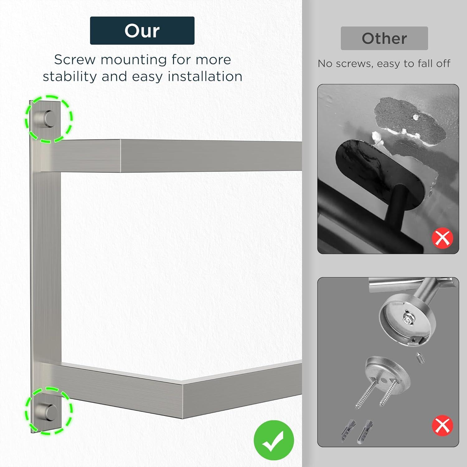 Sturdy Screw Mounting: FORIOUS towel holder is assembled with screws, making it sturdier and more load-bearing than other products on the market. Ensuring it maintains structural stability through daily use, making it less likely to fall off