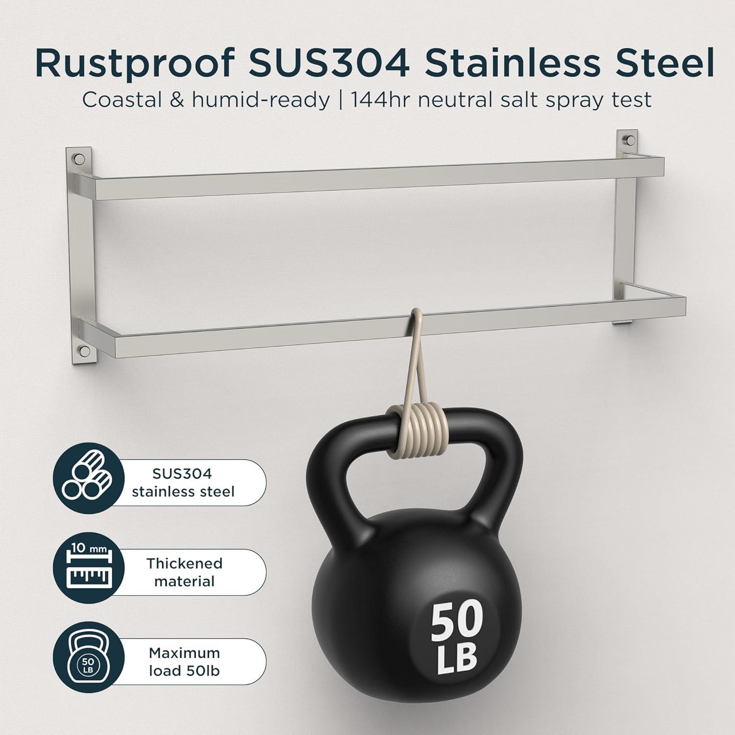 Durable SUS 304 Stainless Steel: Made from heavy-duty SUS304 stainless steel, this bathroom towel bar resists deformation and damage over time. Its rust-resistant properties maintain integrity in humid environments