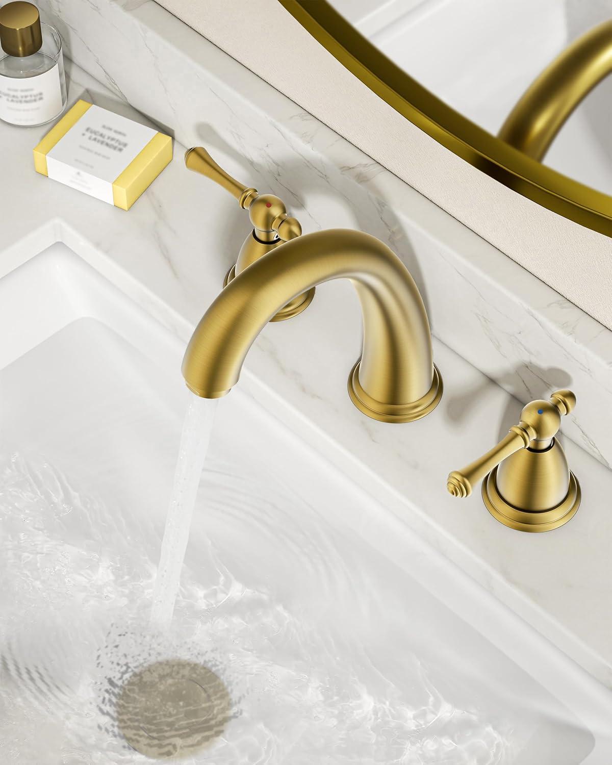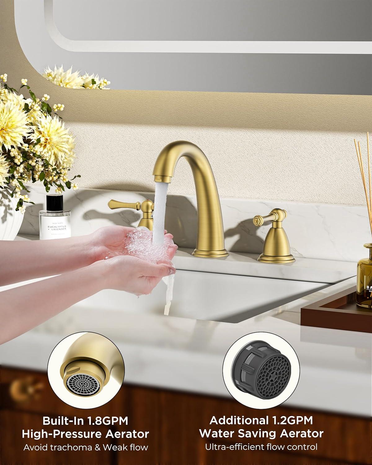 ELEGANT BATHROOM FAUCET-The bathroom faucet 3 hole adopts matte black/brushed gold/brushed nickel finish surface, which effectively resists corrosion, scratches and rust in daily use. Even in humid conditions, it can keep its beautiful look