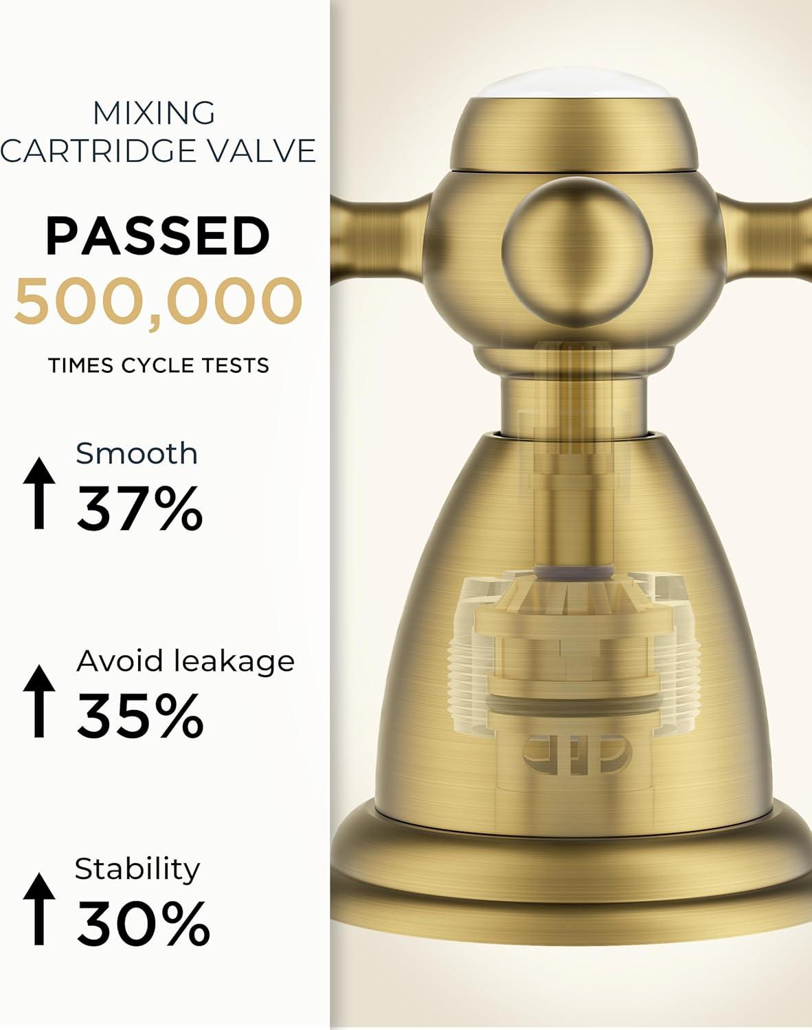 CERANIC VALVE CORE-All cartridge valve of forious brushed nickel bathroom faucet has passed 500,000 cycles of water tightness test, to ensure high air tightness and stable, which is unaffected by temperature extremes, sand, rust, and hard water conditions