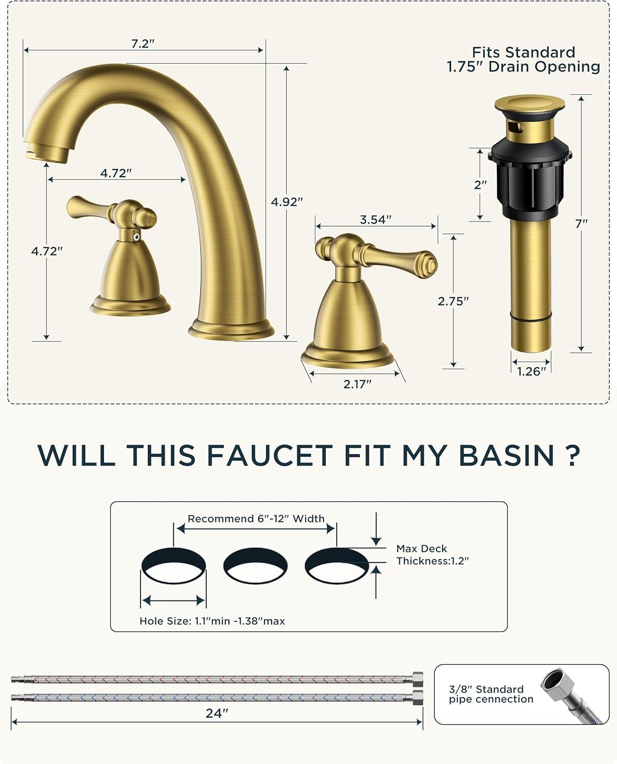 15MINS QUICK INSTALL-This faucet bathtroom suitable for a 3 hole 6-12 inch center sink, and the best installation effect is 6-10 inch. The size is larger, please check your sink hole before take it. Special design of the bathroom basin sink faucet and hose connection, quick connection structure, it is easy to install by yourself without a plumber within 15 minutes