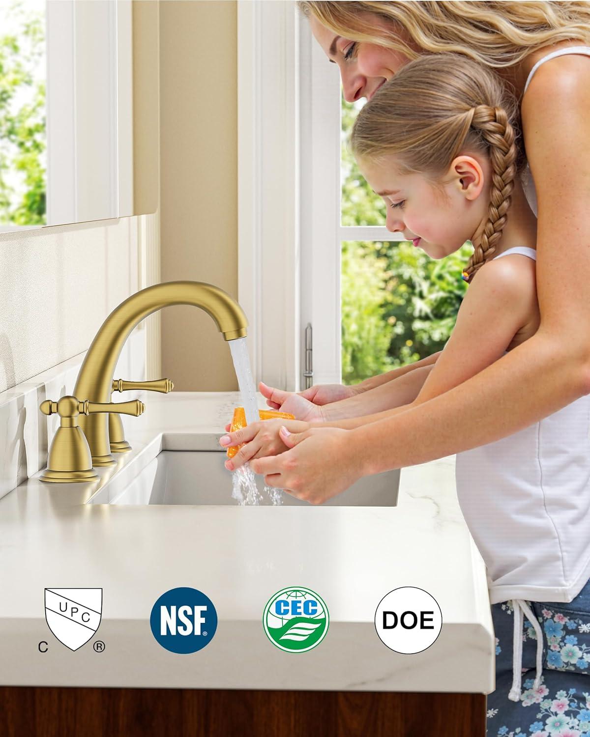 SAFE AND HARMLESS- bathroom sink faucet meets CEC, cUPC and NSFIANSICAN 372 certification requirements in pursuit of a safe environment.Equipped with copper pipes to ensure safe water quality.Flow rate: 1.2gpm/4.5L/min at Max 60psi