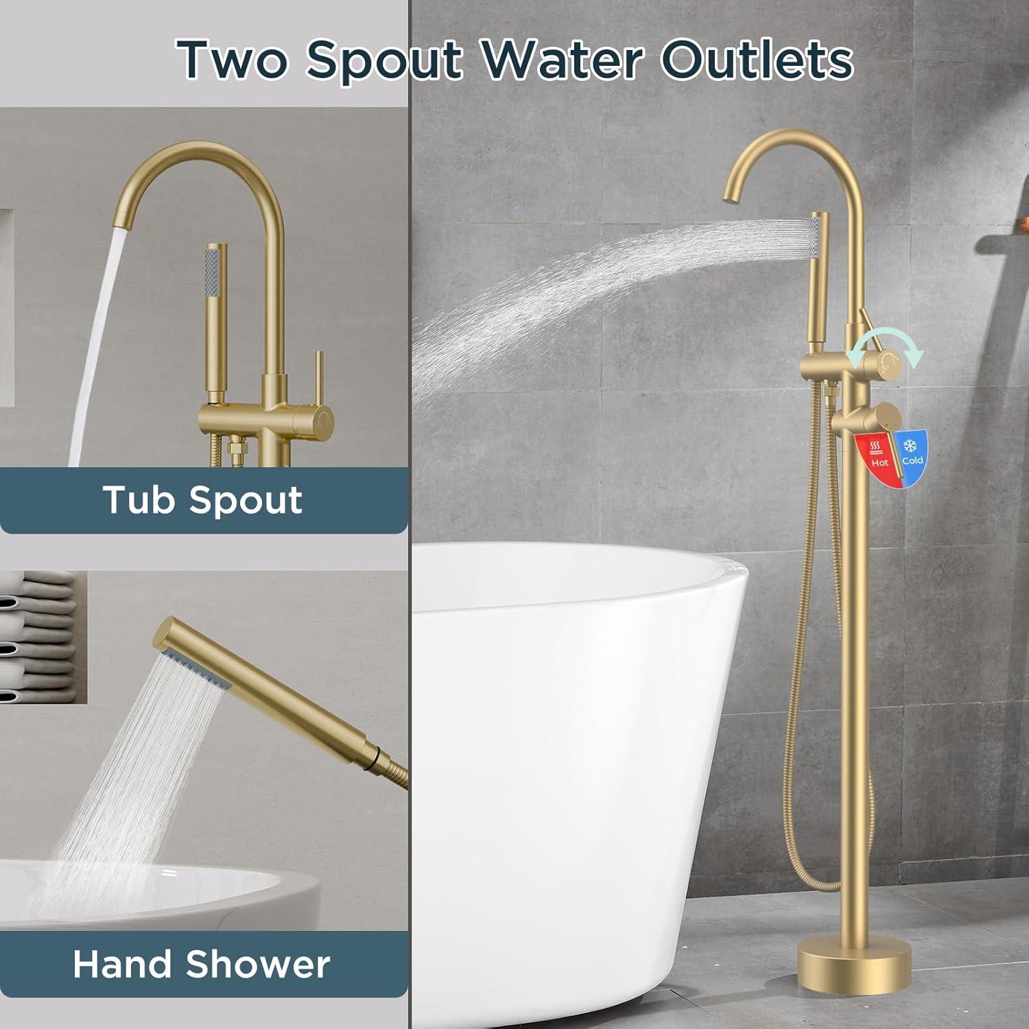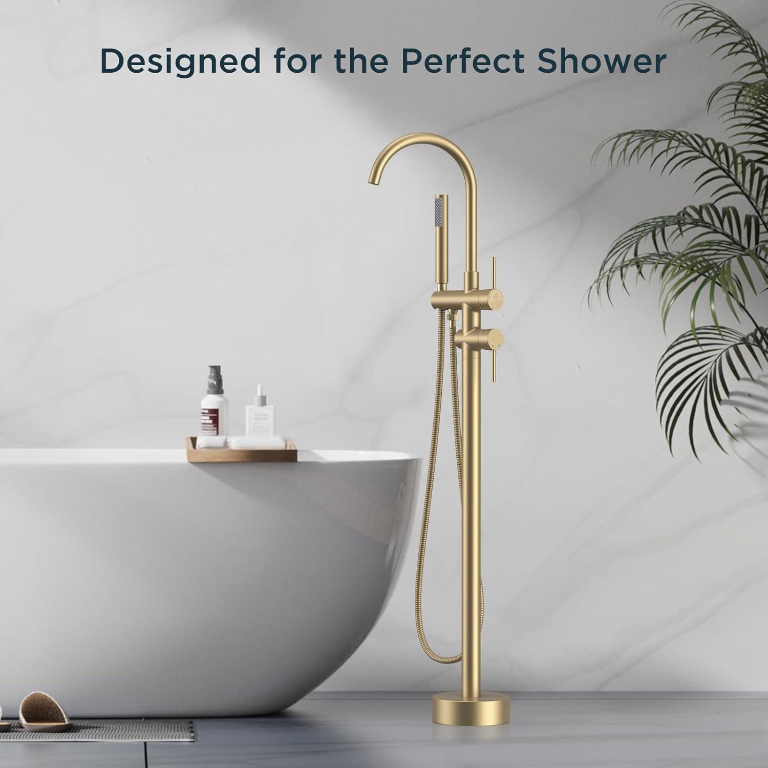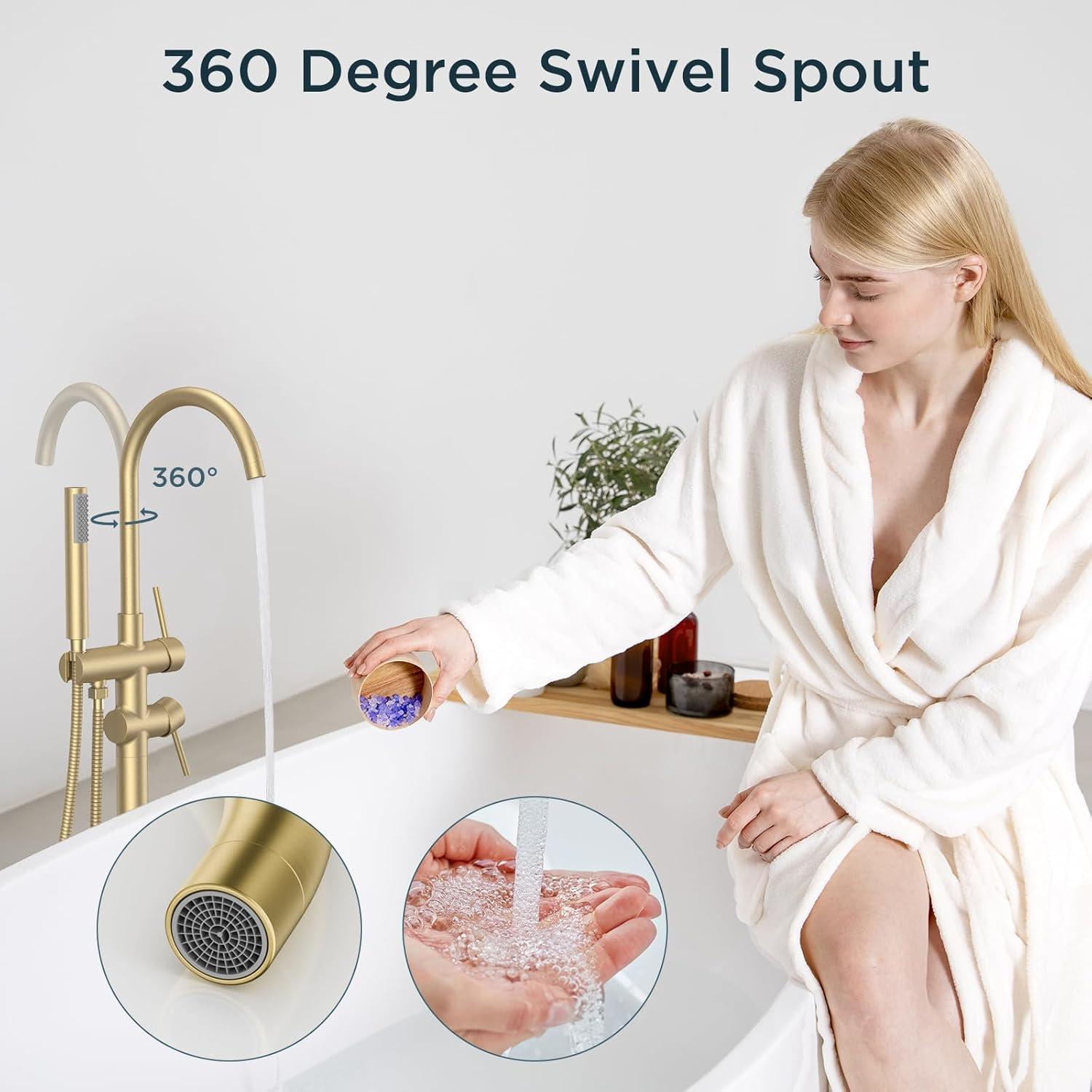 Multifunctional: The FORIOUS freestanding bathtub faucet has a 360 degree swivel spout, a contemporary cylinder-style handheld shower matching a 59’’(150cm) stainless steel hose. It is perfect for all your bathing needs including rinsing, washing pets and keeping the tub clean