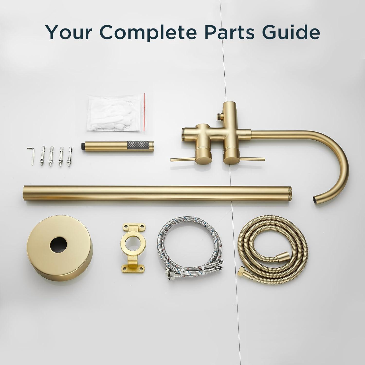 Easy Installation: Quick freestanding mount-to-floor design with high and rigid brass tripod mounting bracket and hardware included, allowing for easy and stable installation while seamlessly allowing for water supply to pass through