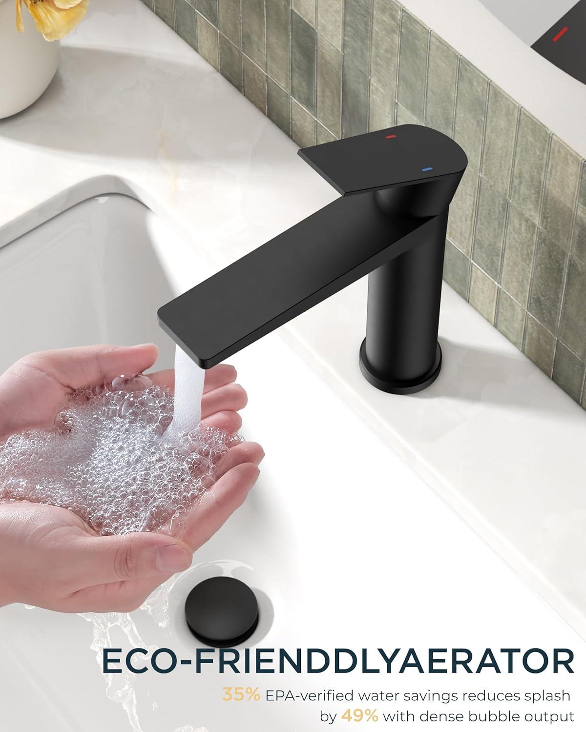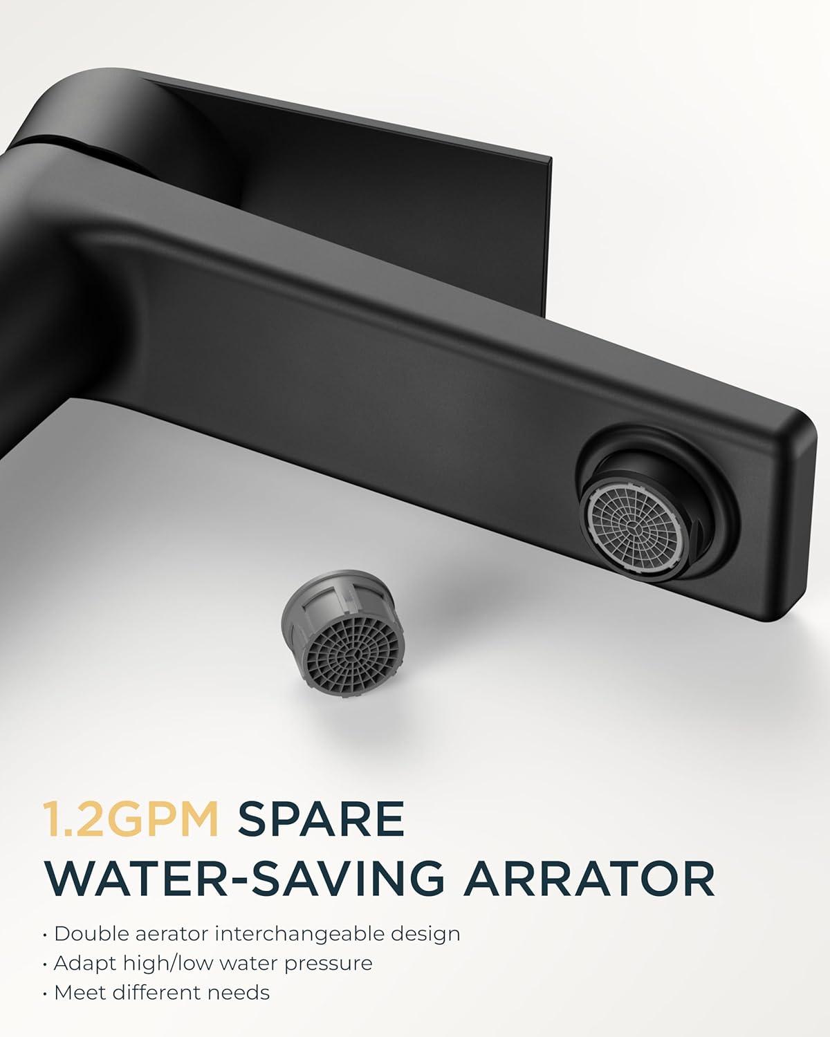 FLEXIBLE DUAL AERATOR SYSTEM: The gold single hole bathroom faucet pre-installed high-pressure aerator + included spare 1.2gpm WaterSense spare aerator (30% water savings). Interchangeable design adapts to high/low water pressure needs