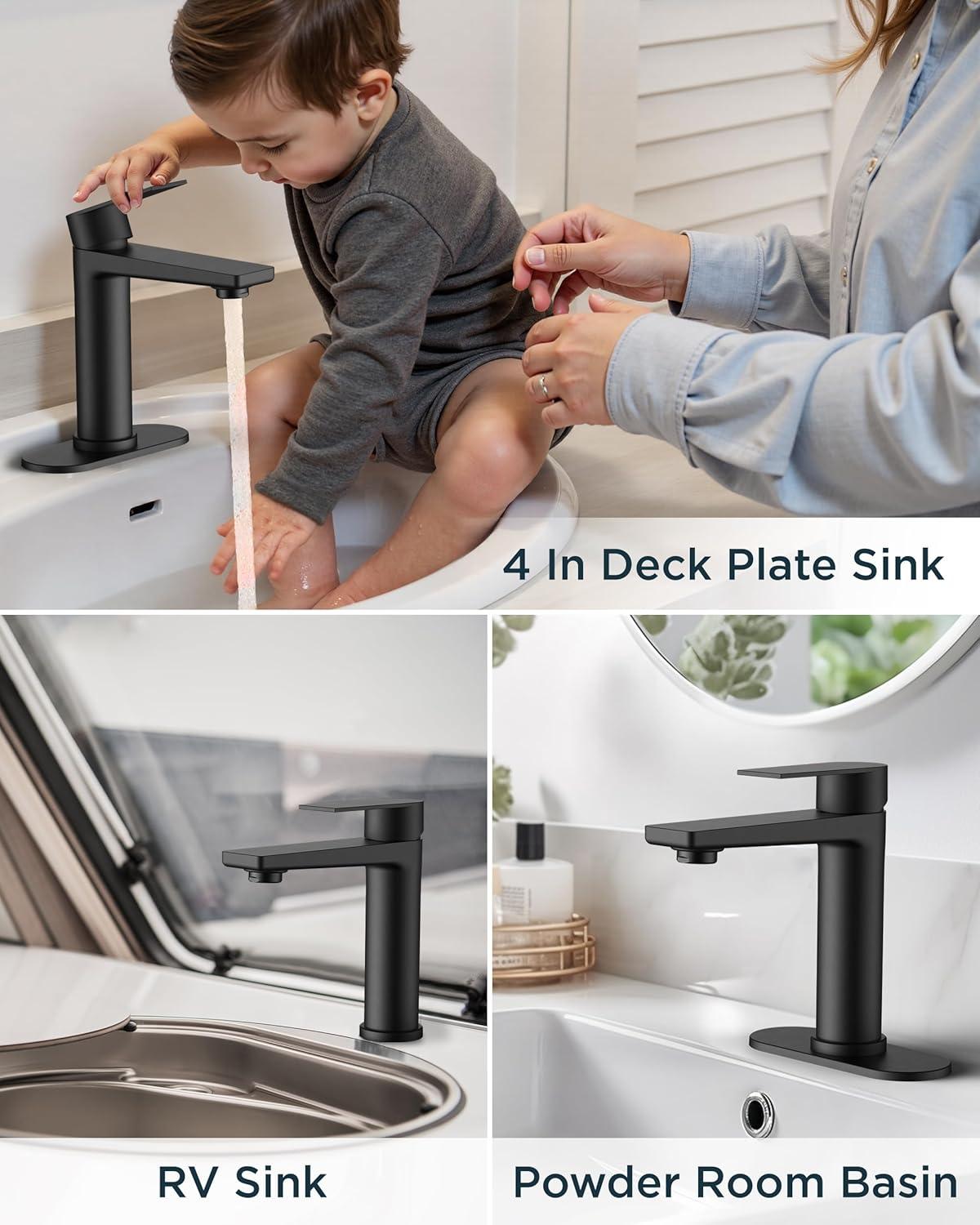 IDEAL FOR DIVERSE COMPACT SPACES: Modern single-lever design for effortless flow/temperature control. The gold faucet for bathroom sink Perfect for bathroom sinks, powder rooms, RVs, campers, travel trailers, laundry rooms, and restroom sinks