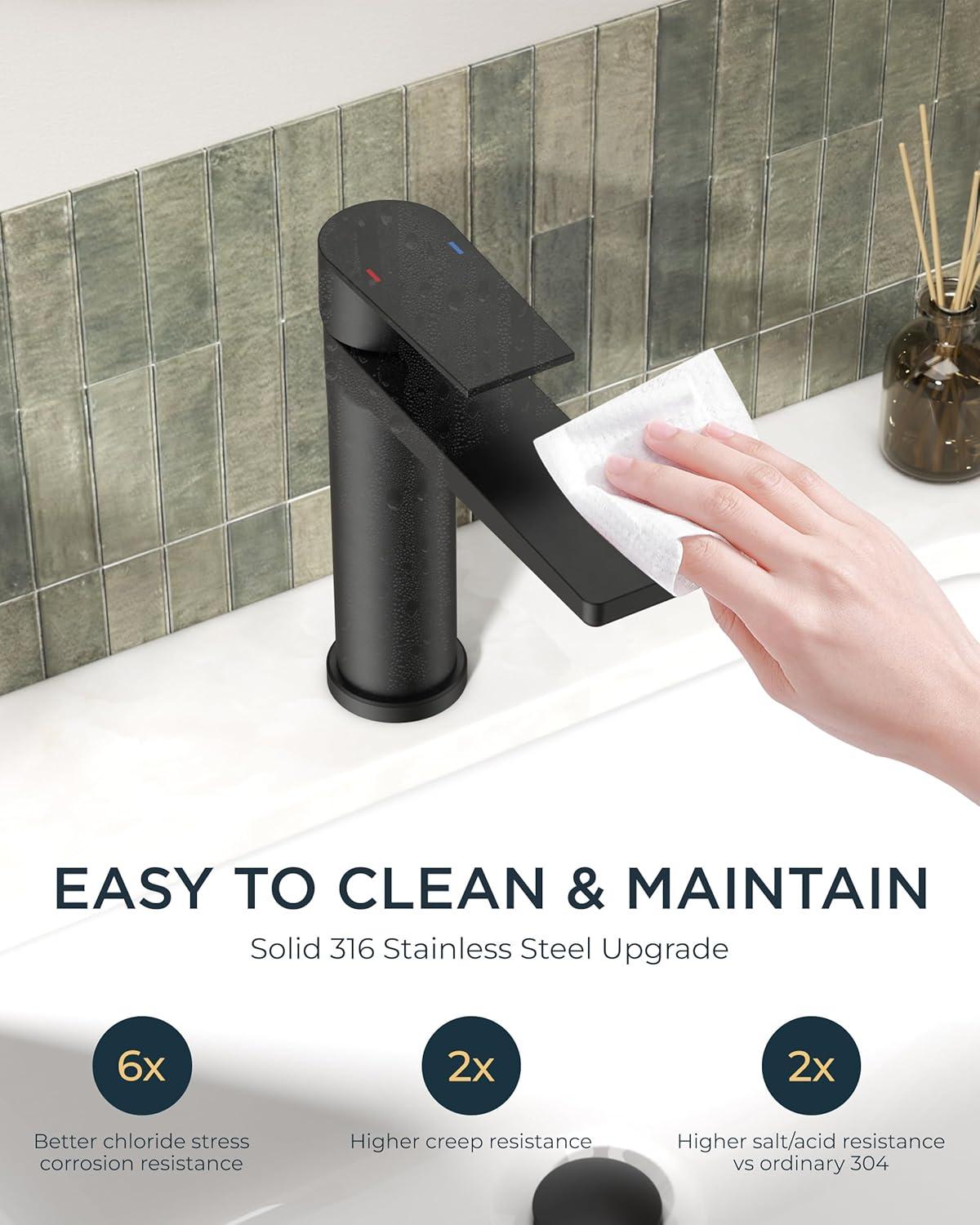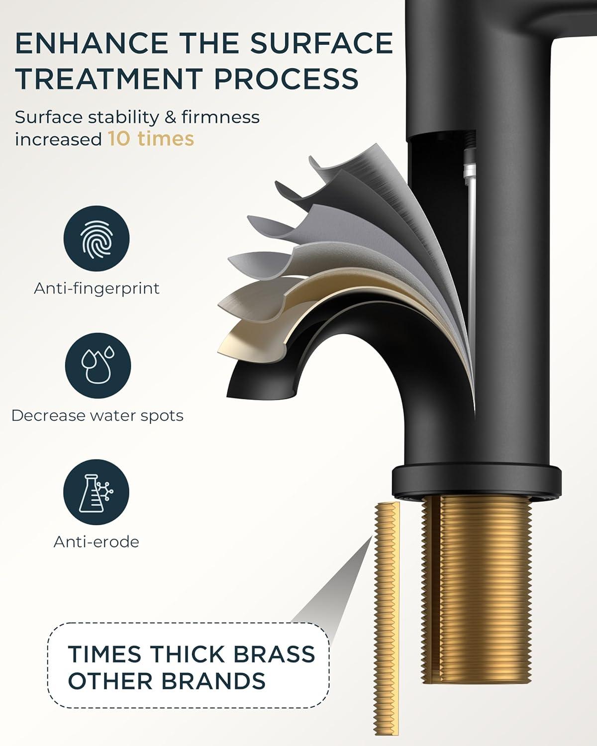 UPGRADED: Upgraded 316 SS gold faucet bathroom offers double the rust resistance, passing 36h acid salt spray test. Enhanced surface technology increases firmness/stability by 6x – cleans with a light wipe. Flow rate: 1.2gpm/4.5L/min at Max 60psi