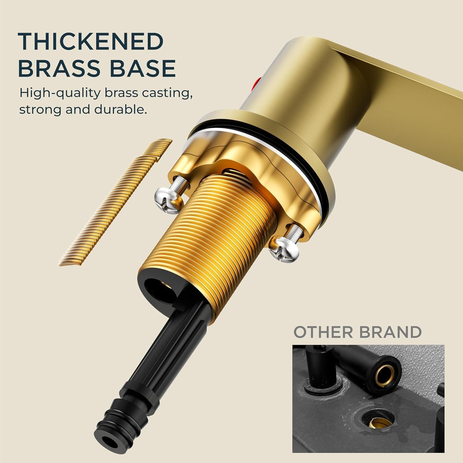 Multi-Style & 24/7 Service: From modern to rustic, the bathroom sink faucet 3 hole complements various style. Available in three color options: brushed nickel, matte black, or brushed gold. Besides, 24/7 customer support is provided, including installation guidance or accessory replacement services.