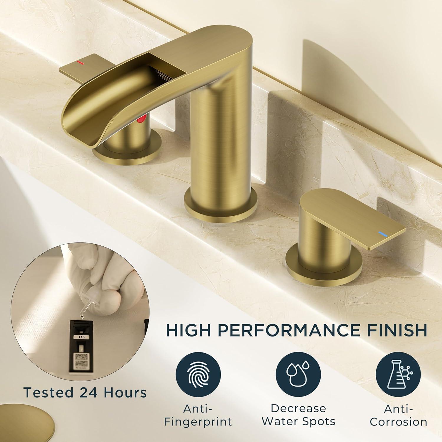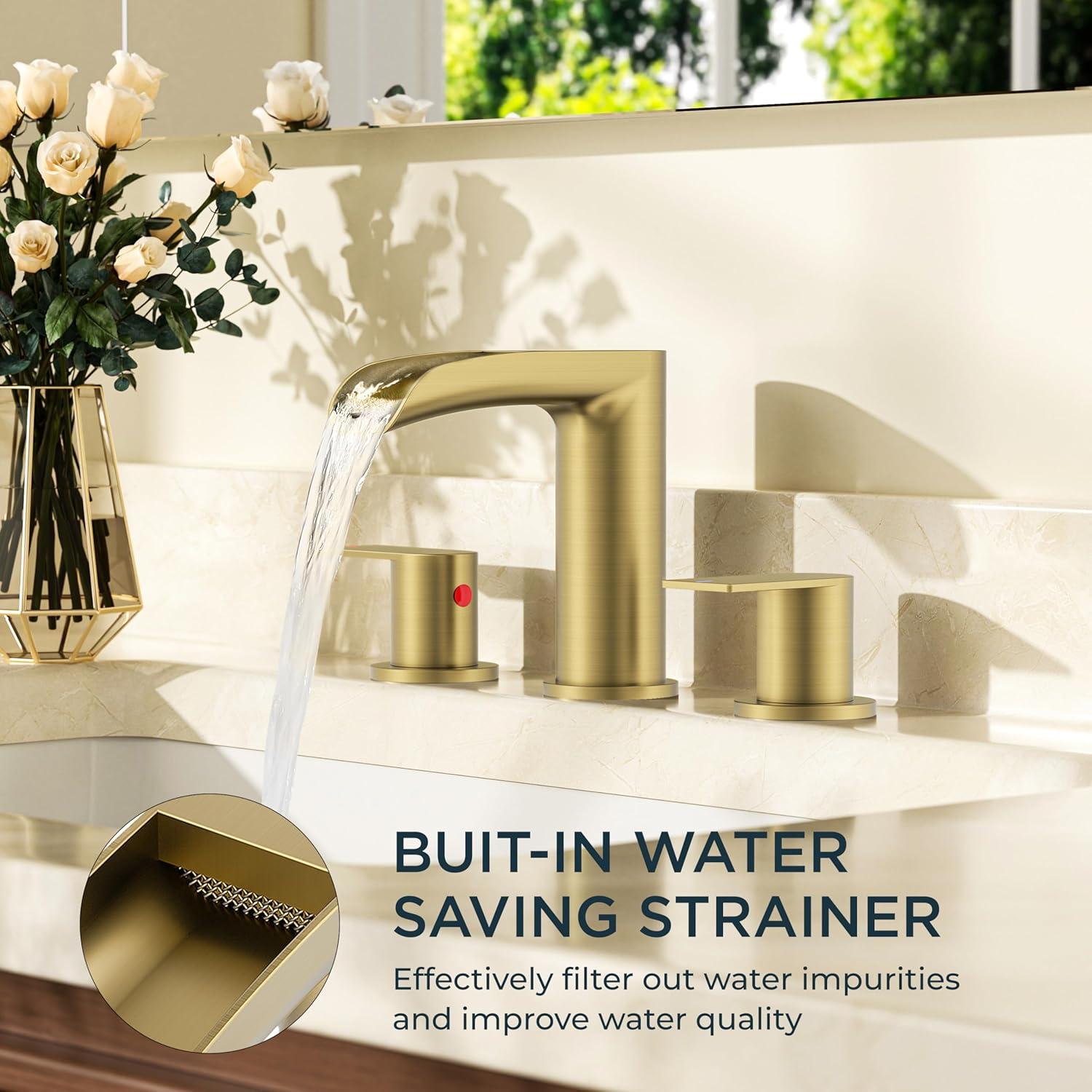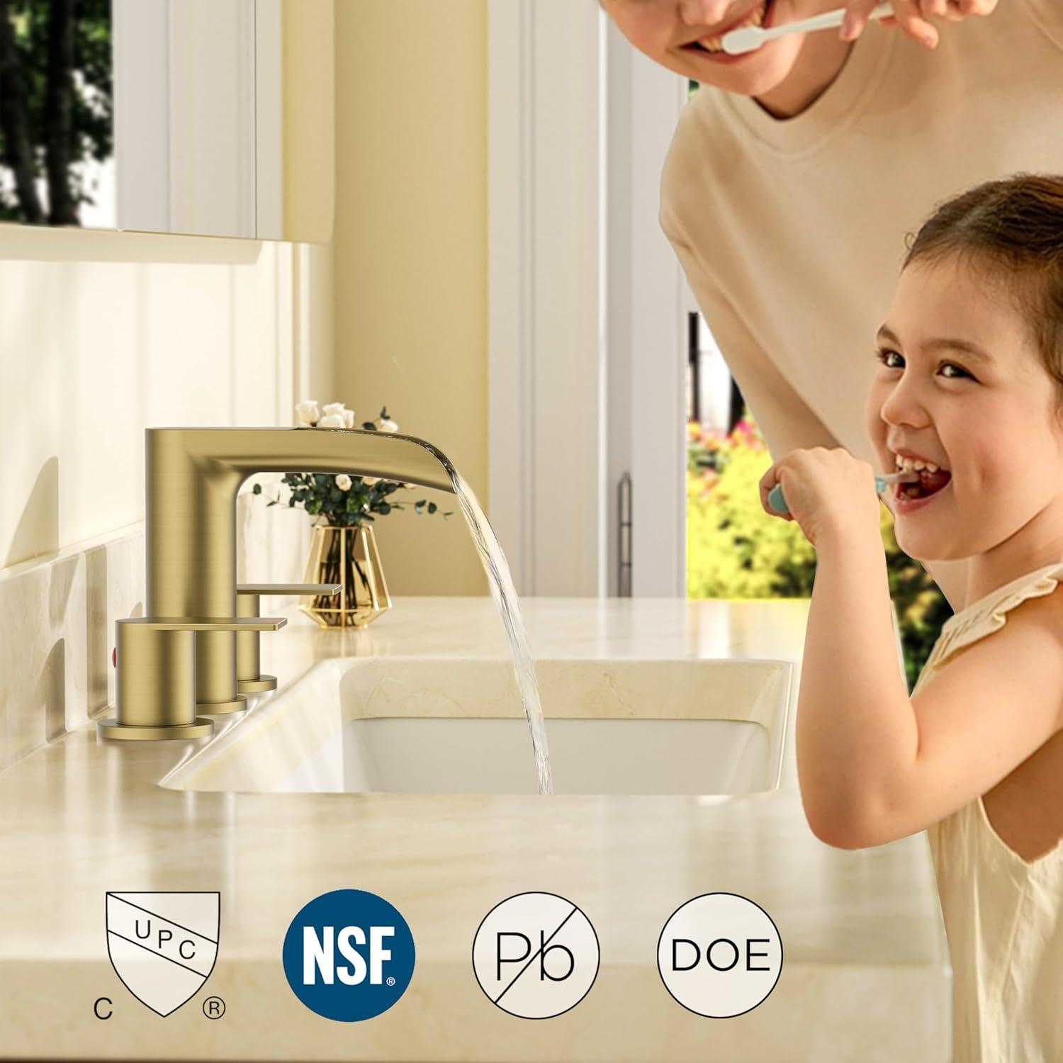 Waterfall-Style Water Flow: This waterfall bathroom faucet features three layers of refined metal filters, creating a softer water flow. The gold bathroom faucet provides a natural, spa-like handwashing experience. With a sleek design, it complements various decor styles, enhancing the overall aesthetic of kitchens or bathrooms. Unlike traditional faucets spray, the flow rate is 1.2gpm/4.5L/min at max 60psi, its waterfall flow minimizes splashing, keeping countertops dry.