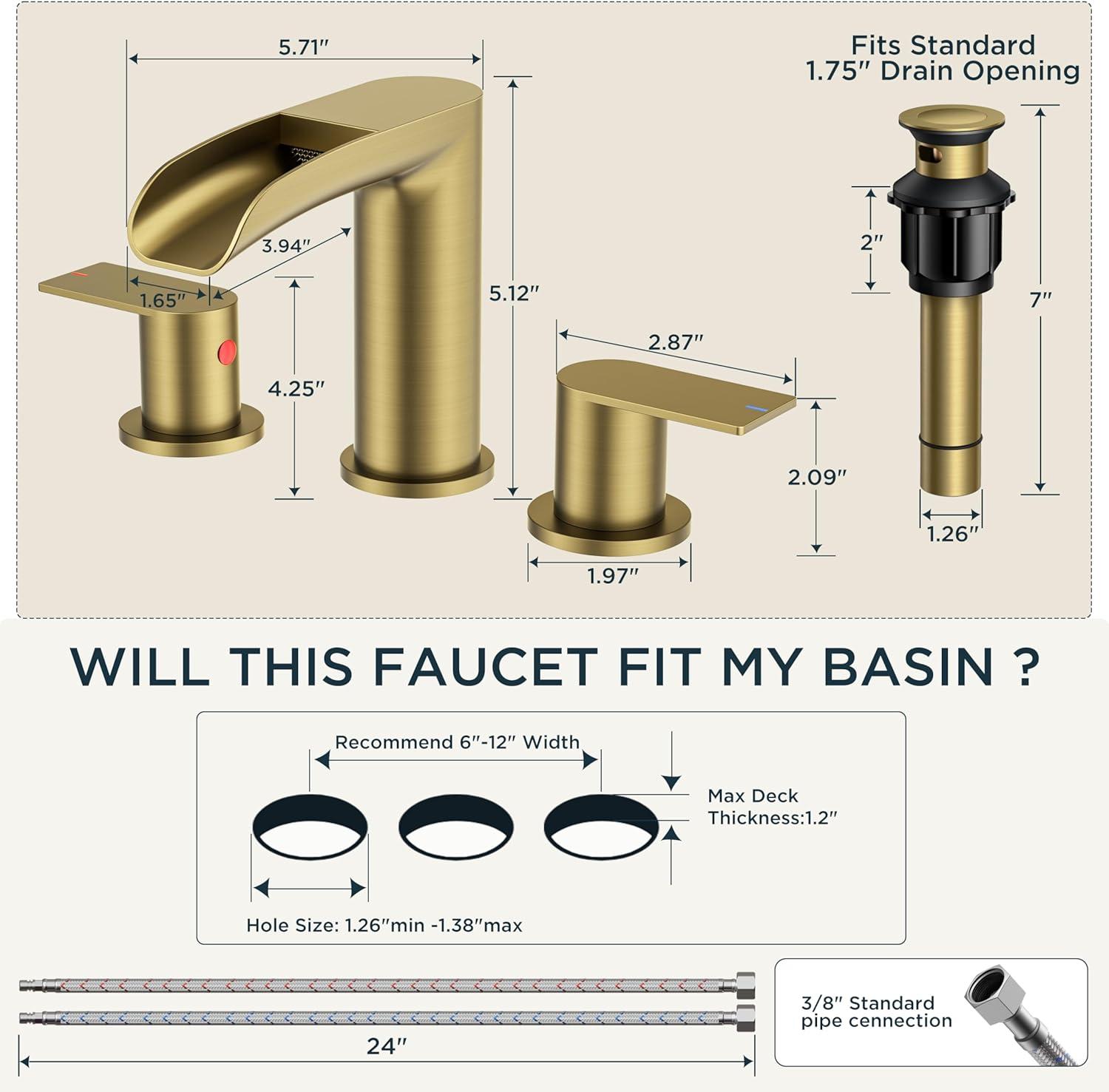 Easy Installation in 15 Mins: The FORIOUS bathroom sink faucet is compatible with all standard 3-hole widespread sinks measuring 6–12 inches in width between hole in holes. It includes a pop-up drain and 24″ PEX water supples(3/8″ thread), assembly and pre-installed hardware—simply unbox, install, and enjoy. No plumber required.