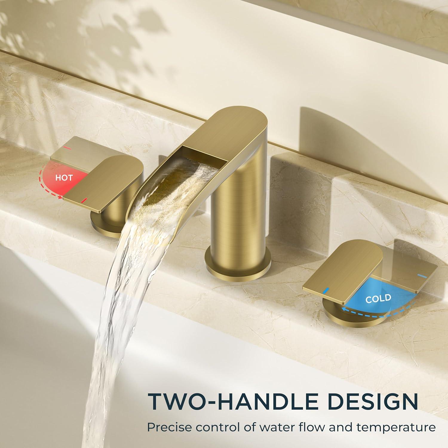 Dual-Handle Precise Control: The bathroom faucets feature two solid metal handles that can be rotated 90 degrees forward to precise adjust water temperature and flow. The compact handle design saves space and fits perfectly even in tight bathroom—no need to reserve space for a splash guard.