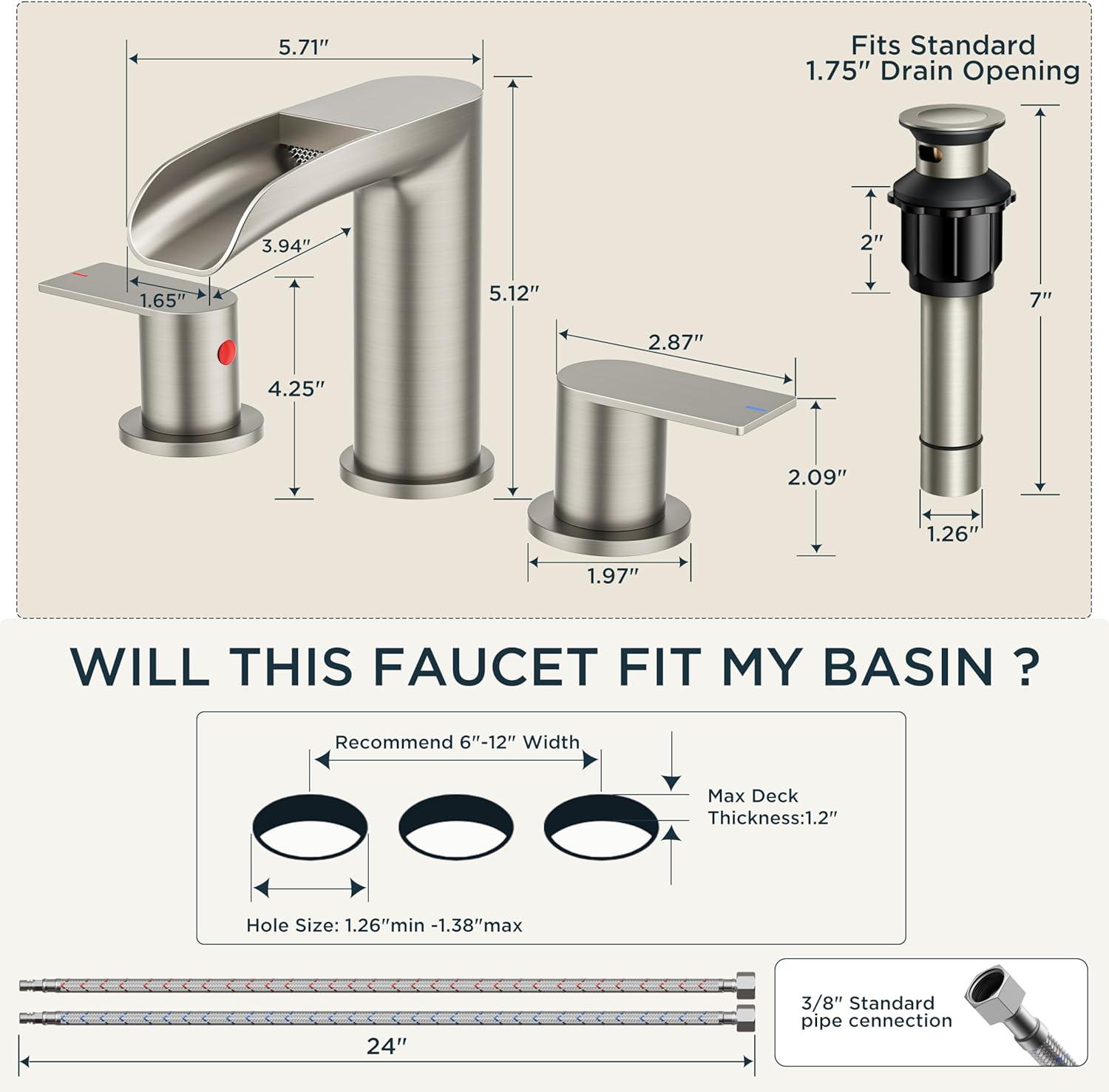 Easy Installation in 15 Mins: The FORIOUS bathroom sink faucet is compatible with all standard 3-hole widespread sinks measuring 6–12 inches in width between hole in holes. It includes a pop-up drain and 24″ PEX water supples(3/8″ thread), assembly and pre-installed hardware—simply unbox, install, and enjoy. No plumber required.