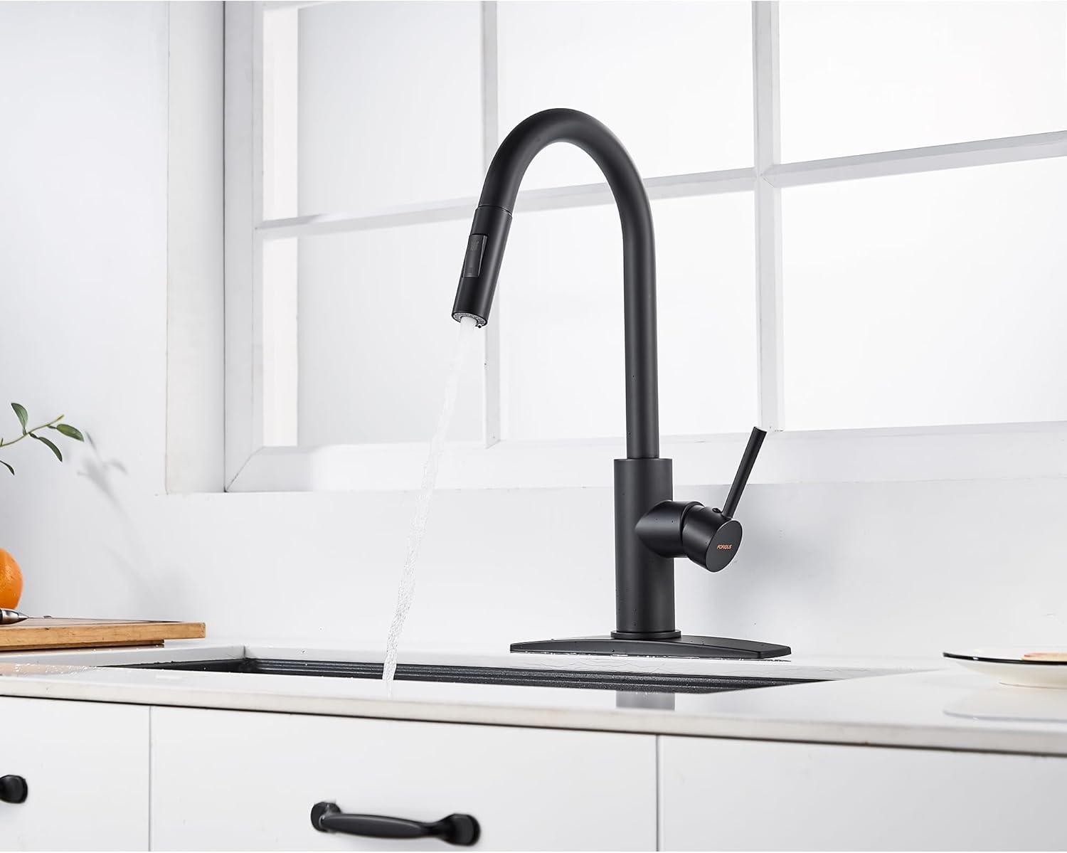 FORIOUS Gold Kitchen Faucet with Pull Down Sprayer, Brushed Brass High Arc Gooseneck Modern Sink Faucet with CUPC Ceramic Cartridge, Single Handle Stainless Steel and Deck Plate(Matte Black)