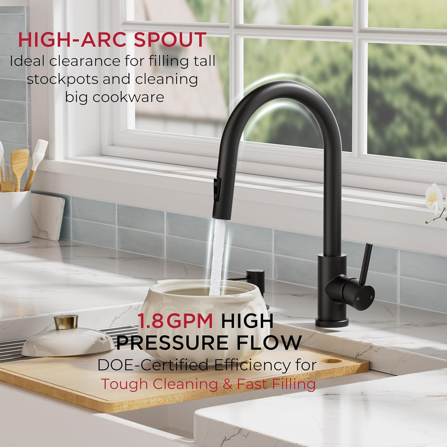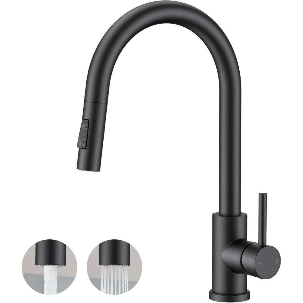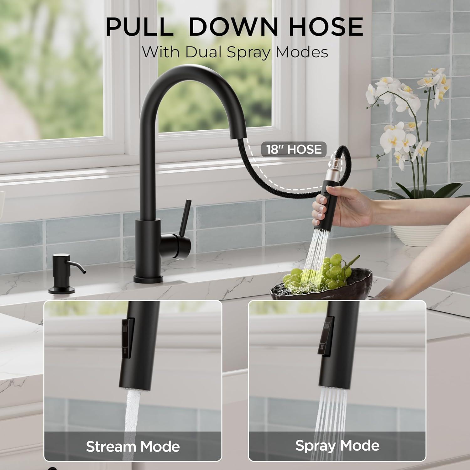 Pull-Down Sprayer with Two Modes: Easily switch between stream and spray modes with a single touch. The 360-degree rotating spout and 18-inch flexible hose reach all areas of the sink, perfect for washing dishes, filling containers, and cleaning corners