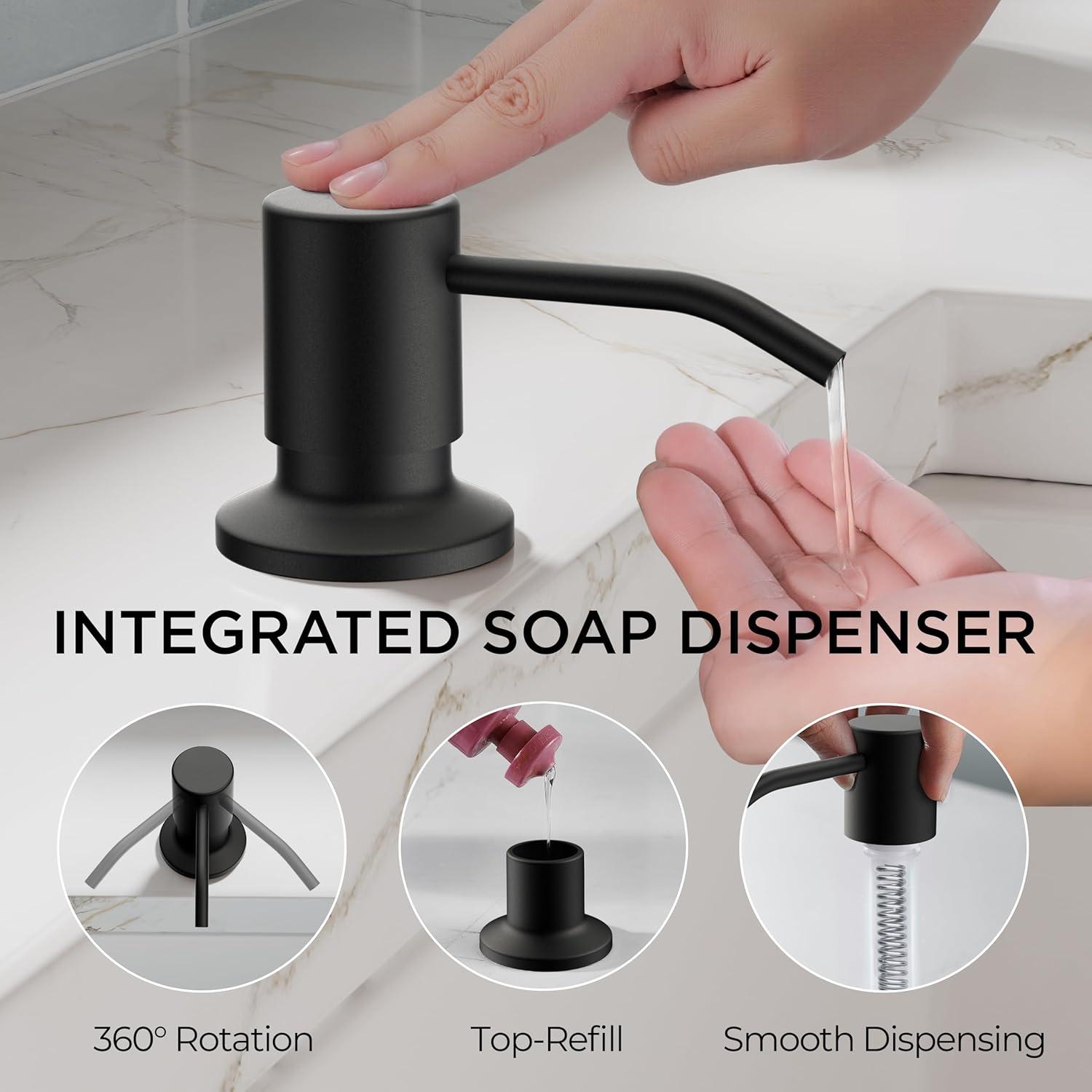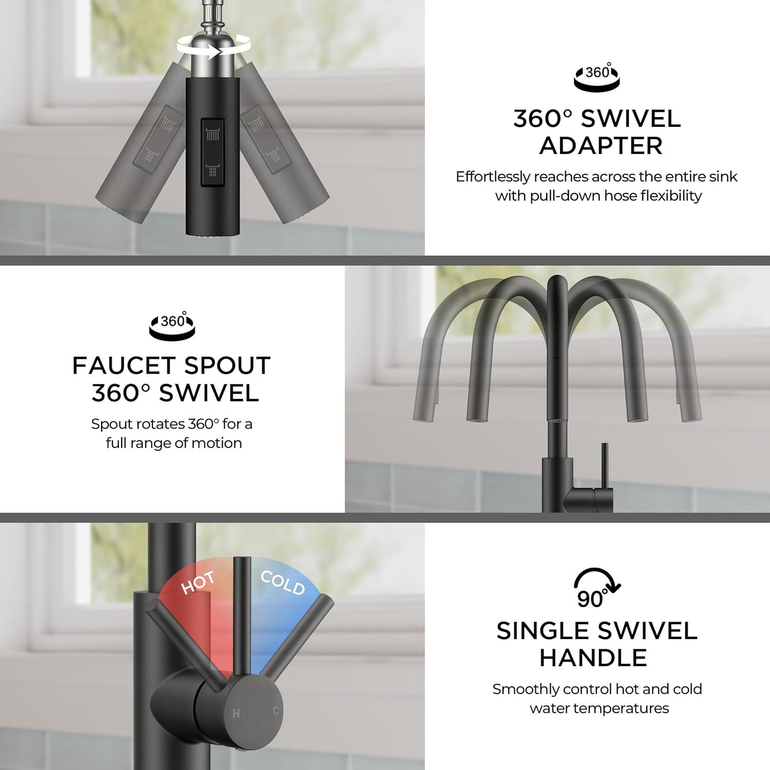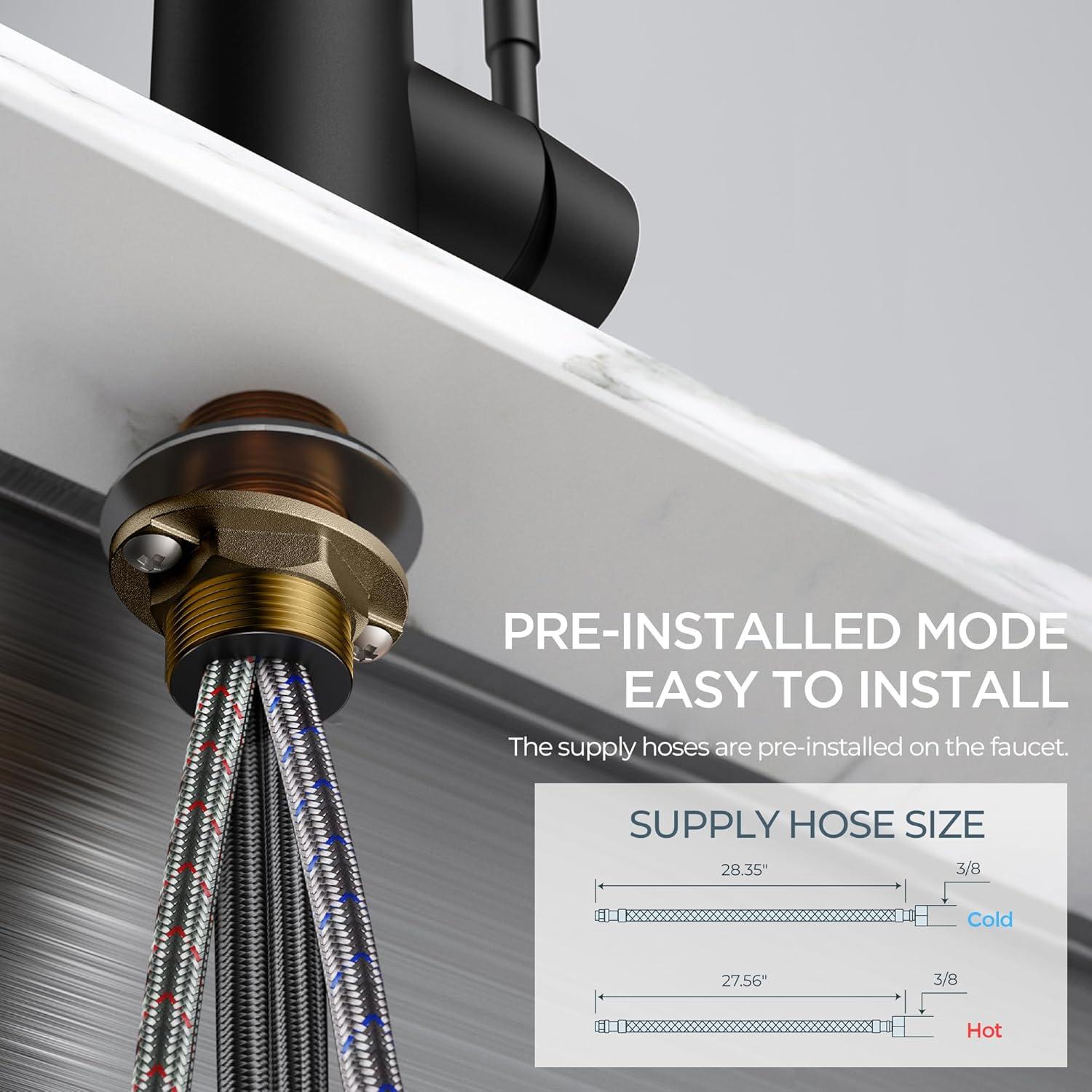 DIY-Friendly Installation: Comes with pre-assembled water hoses, premium mounting hardware, and a straightforward instruction guide. Set up your kitchen sink faucet in approximately 15 minutes without the need for professional assistance