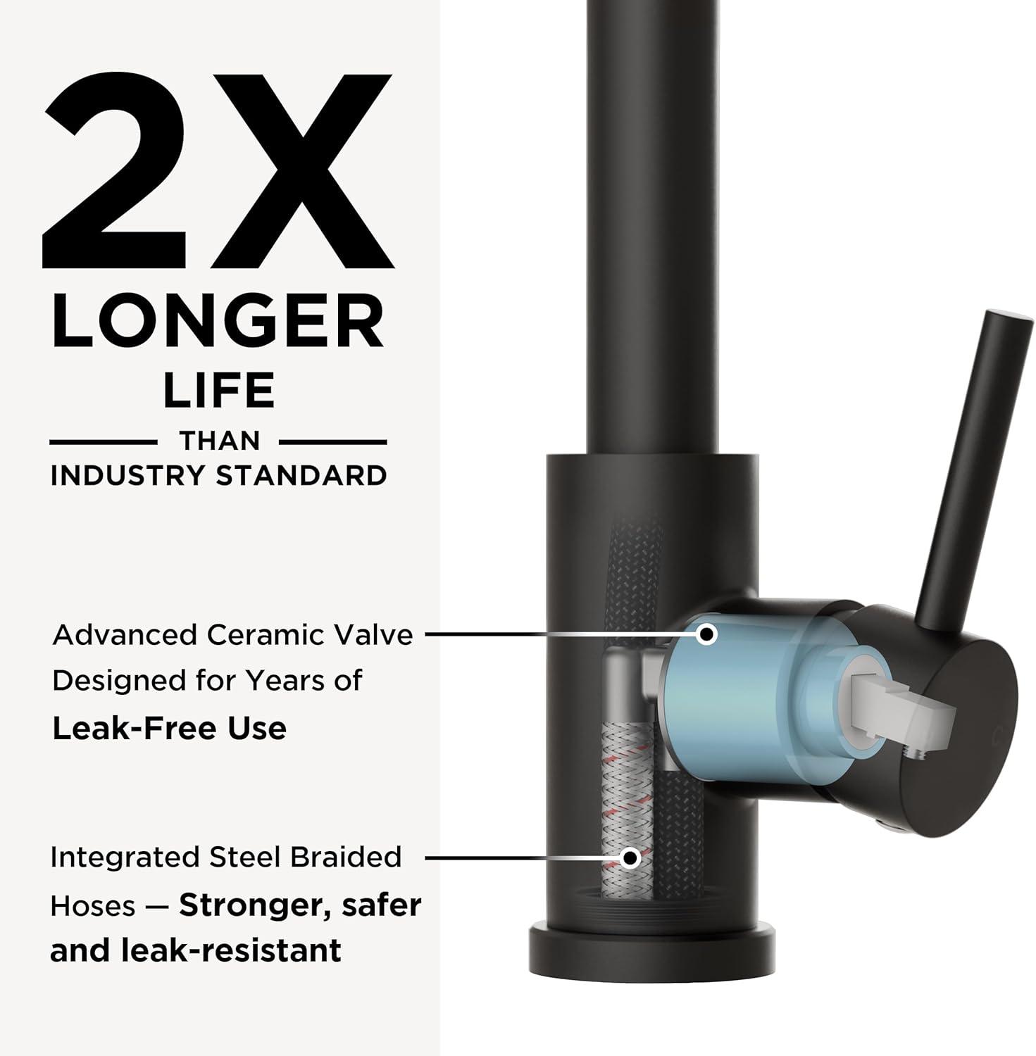 Long-Lasting Ceramic Valve: Equipped with a lead-free ceramic cartridge tested for over 500,000 uses, this faucet for kitchen sink ensures long-lasting, smooth operation without drips, delivering consistent water flow for everyday kitchen tasks