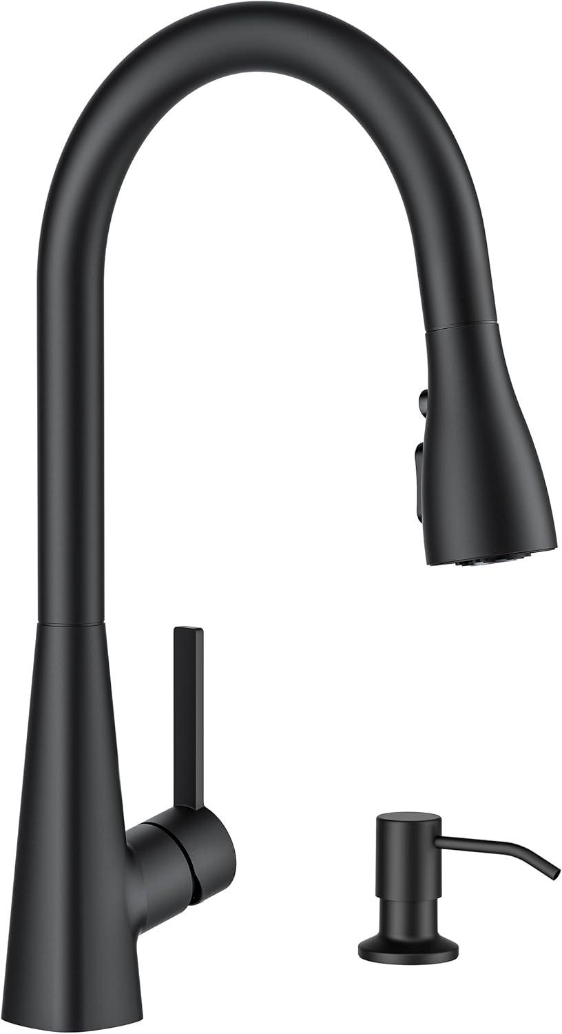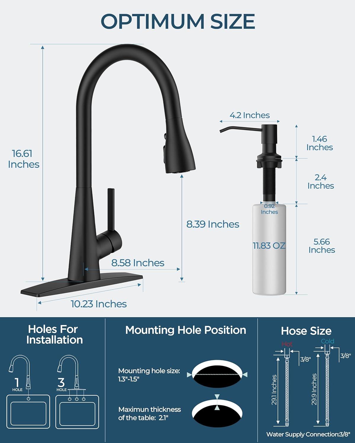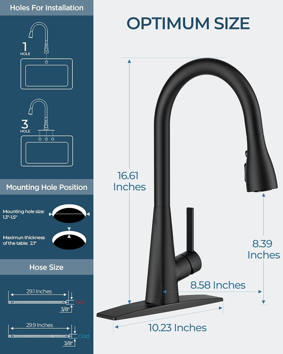 4-Function Pull-Down Sprayer: Choose from soft stream, swirl spray, power wash, or dual jet streams—whether rinsing produce, washing dishes, or tackling stubborn residue.The Forious kitchen faucet with sprayer features a 360° rotating spray head and an 18-inch flexible hose, providing unmatched flexibility to effortlessly tackle any kitchen task in every corner of your sink
