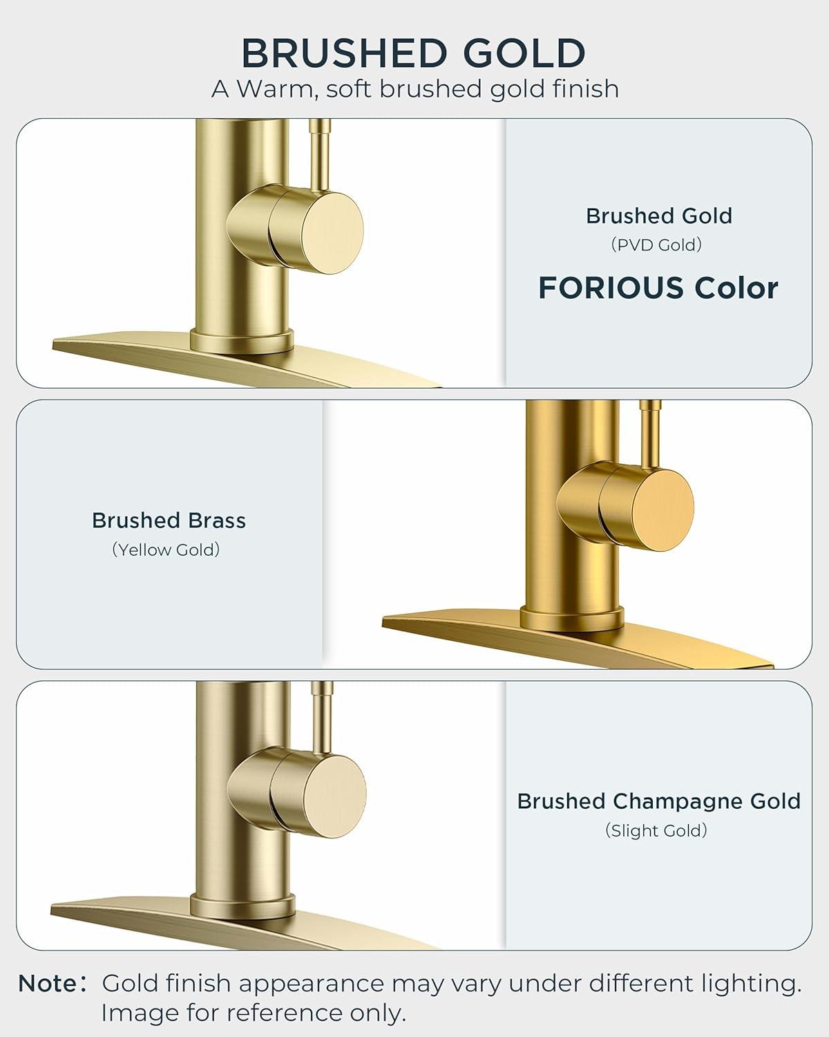 Simple And Stylish Design: Forious kitchen faucet with a high arc gooseneck design, simple and generous appearance adapts to various home styles. 15.27 in Height is easy to match most sinks, the kitchen sink faucet modern is a sleek upgrade for sink area