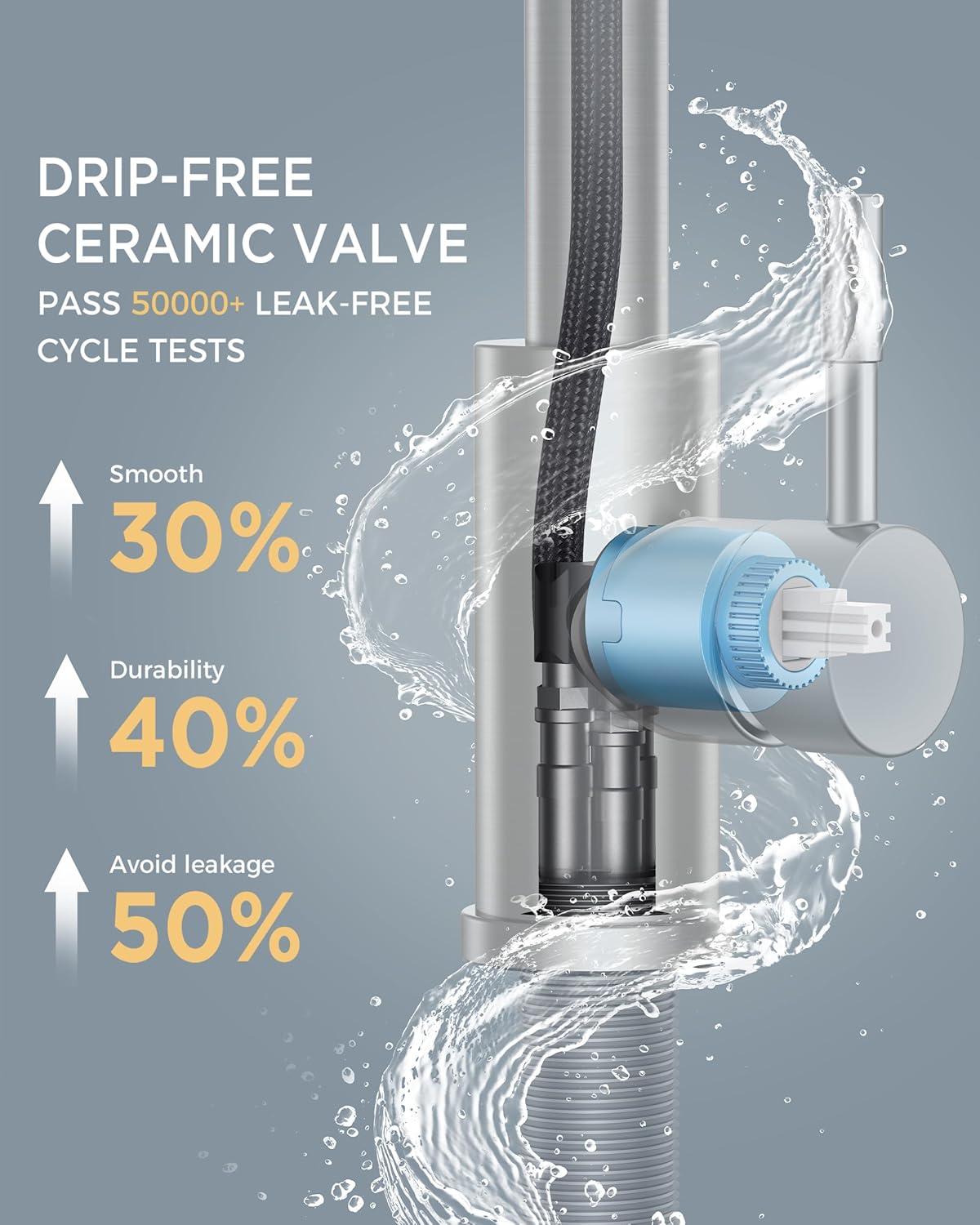 Say No To Leaking: Unlike the brass valve cores on the market that are prone to wear and drip, Forious use diamond-coated ceramic valve cores on kitchen sink faucet , which open and close tightly to prevent dripping, and have been tested 500,000+ times