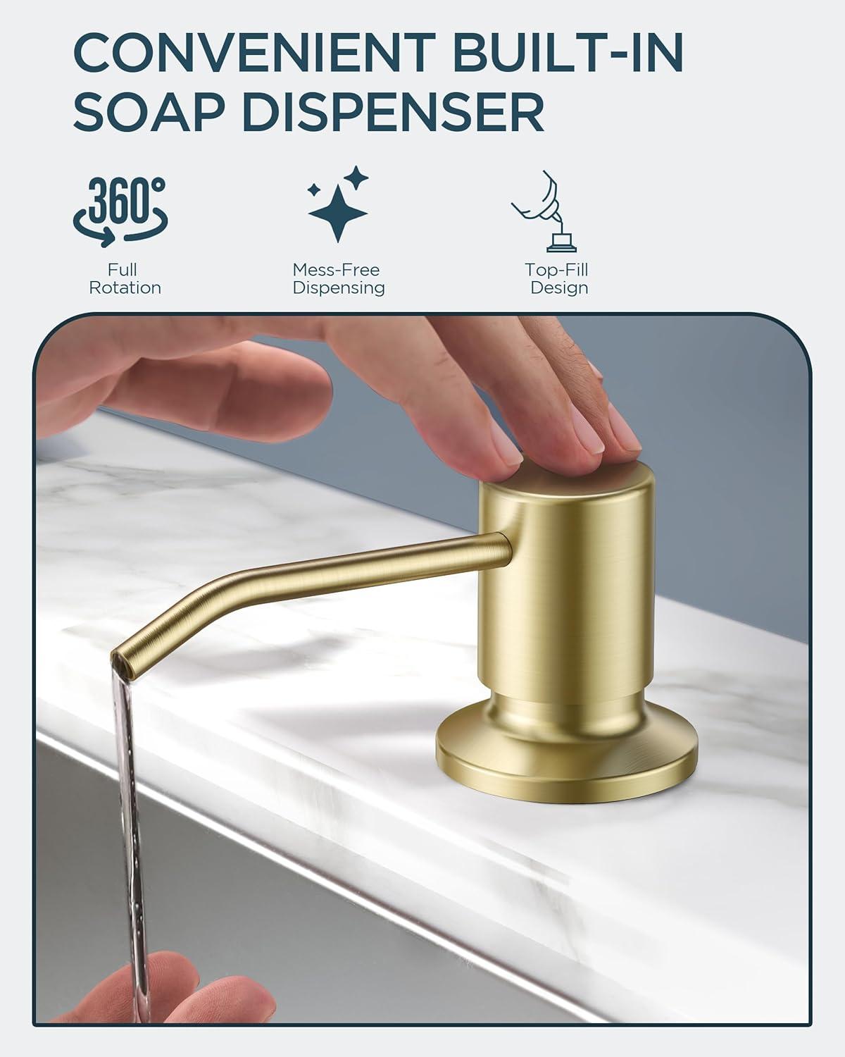 Expand Water Space: The faucet for kitchen sink with 18-inch pull-out hose and 360° swivel design provides a wider and more flexible range of use. Paired with powerful spray, the kitchen faucet can vigorously clean the dead space of the sink