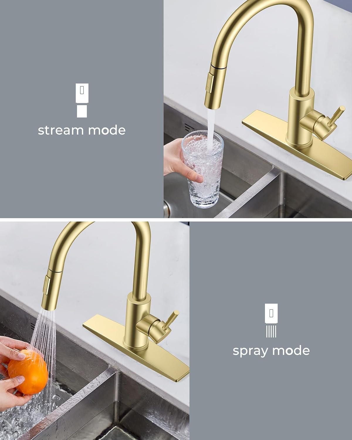 Dual Mode Settings: Forious kitchen faucet with pull down Sprayer has two modes of spray and stream, which adapt to different needs. The soft stream is used for filling or deep pot rinsing. Powerful spray effectively rinses stubborn stains from dishes