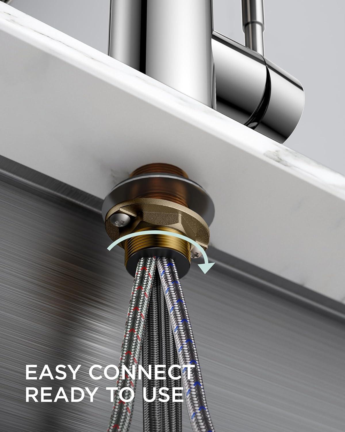 DIY Friendly Installation: Install our sink faucet effortlessly in under 15 minutes without professional assistance, includes a 10-inch detachable deck plate for one or three holes kitchen sinks, and all Mounting hardware for a hassle-free setup