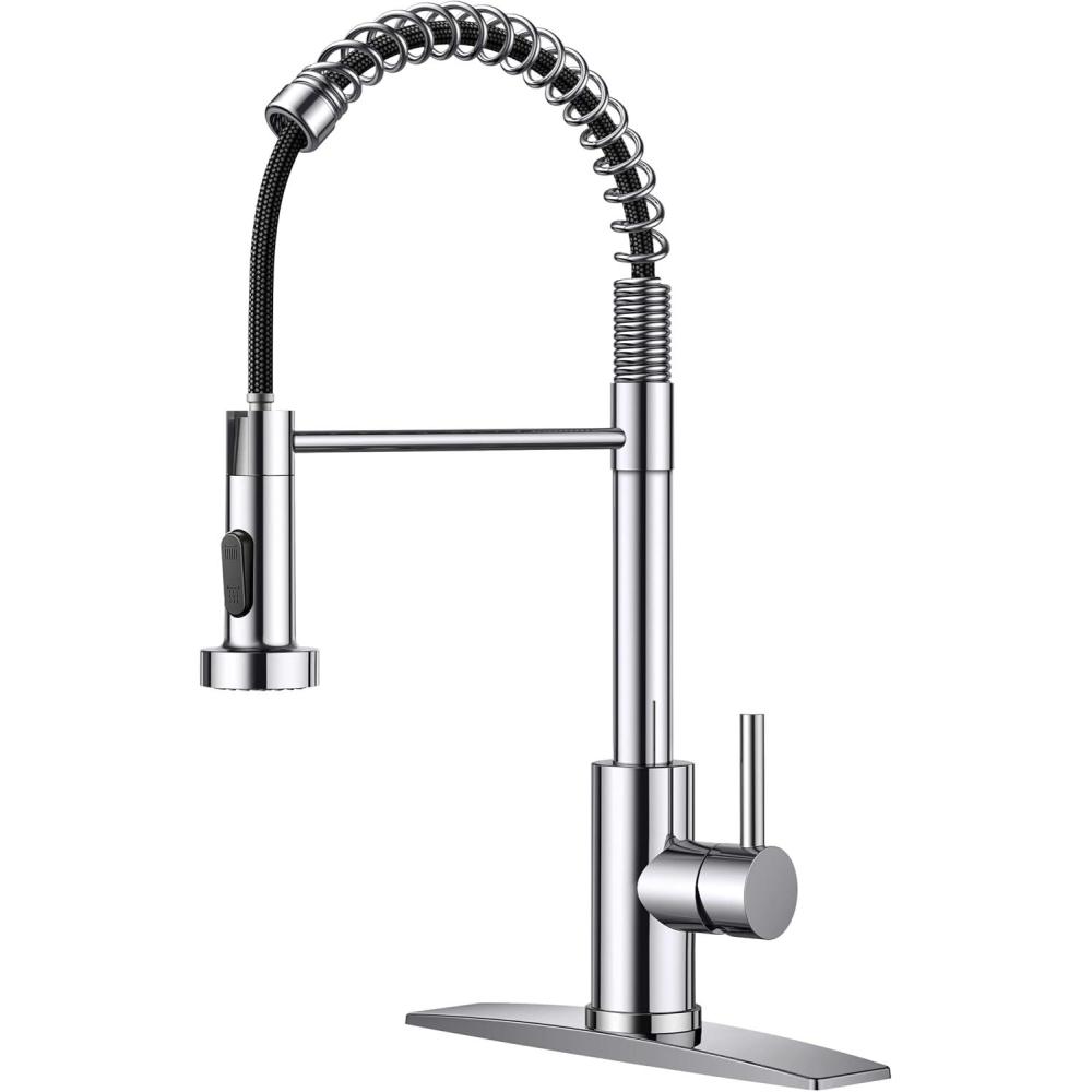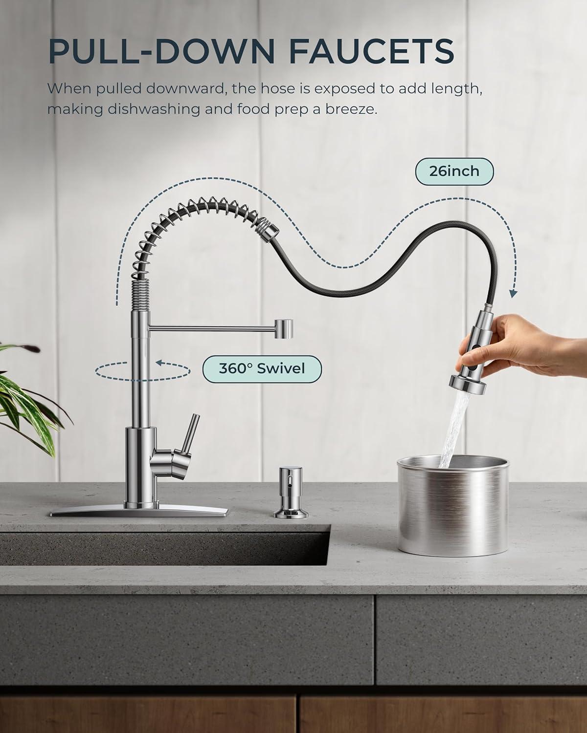 imageFORIOUS Kitchen Faucets Brushed Nickel Kitchen Sink Faucet with Pull Down Sprayer Commercial Kitchen Faucet Stainless Steel Classic Single Handle Pull Out Sink Faucets for RV Laundry Utility RoomChrome