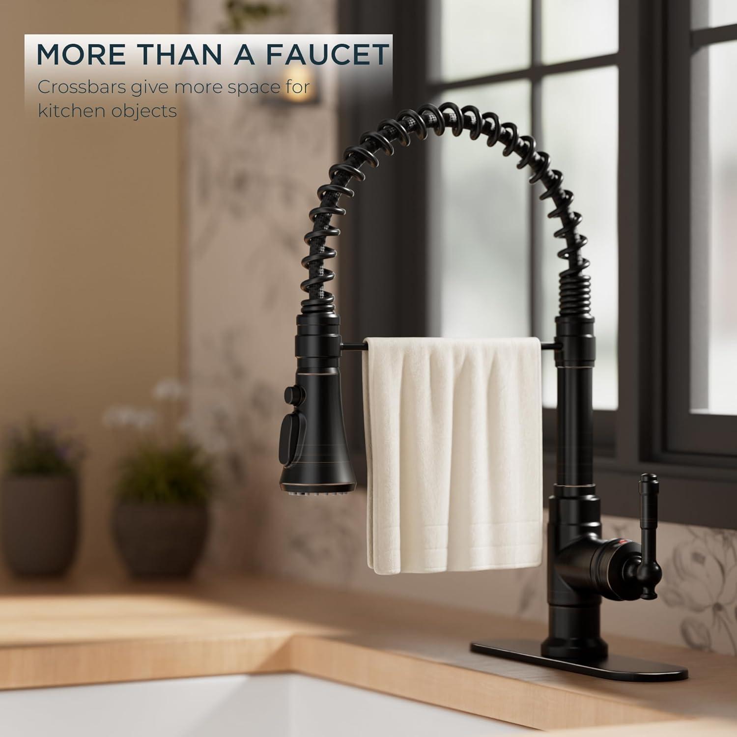 FORIOUS Kitchen Faucets, Brushed Nickel Kitchen Sink Faucet with Pull Down Sprayer, Commercial Kitchen Faucet Stainless Steel, Classic Single Handle Pull Out Sink Faucets for RV Laundry Utility Room(Oil Rubbed Brown)