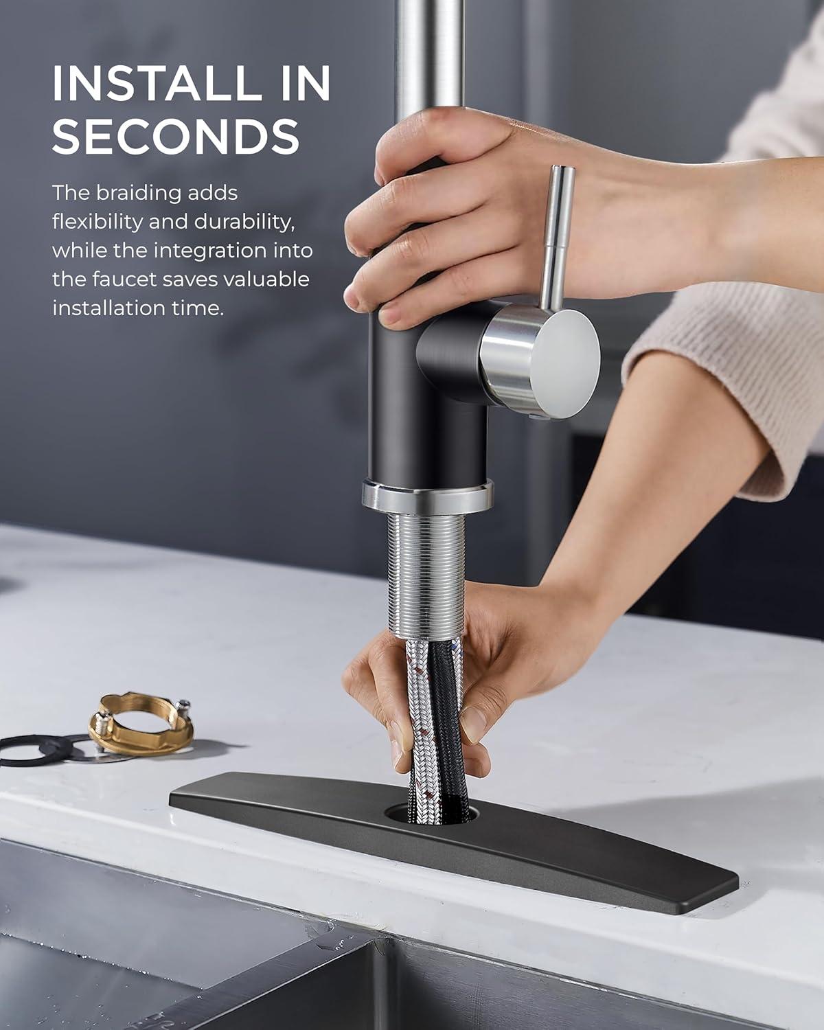 Easy to Installation: Install our kitchen faucet with sprayer in under 15 minutes without professional help. All mounting hardware is included for a hassle-free setup, making the process efficient and cost-effective with our user-friendly design