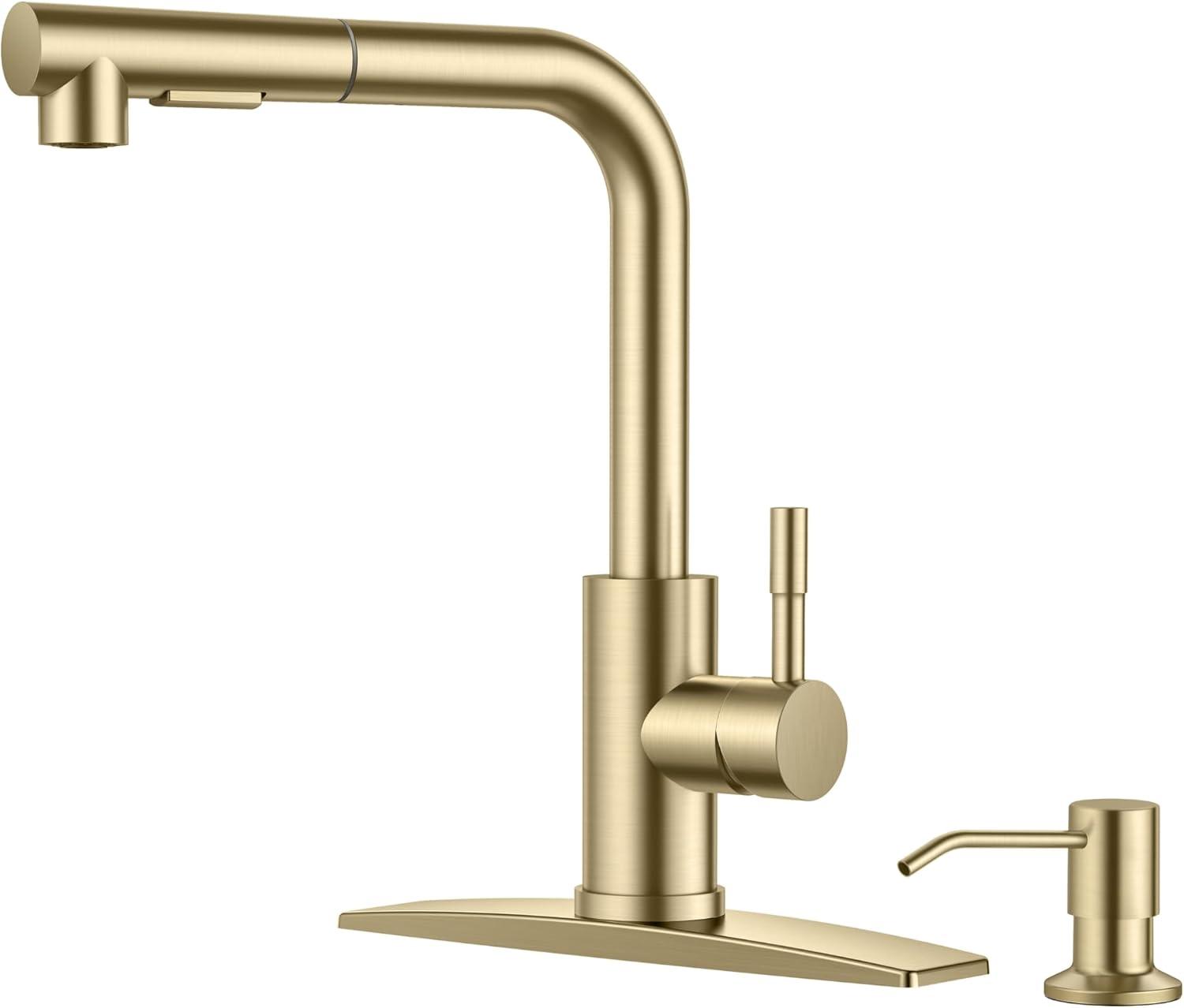 Our clearance section features the best deals on FORIOUS Kitchen Faucets with Pull Down Sprayer, Stainless Steel Single Handle Classic Pull Out Sink Faucet for Farmhouse Laundry RV Bar, with Deck Plate for 1 or 3 Holes, Black Brushed(Gold) and accessories. Check it out now!