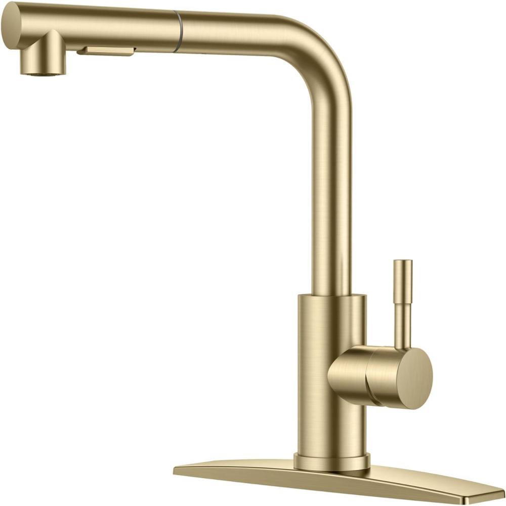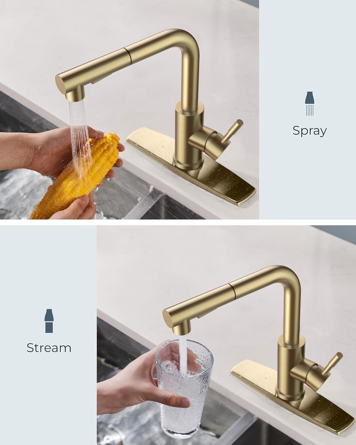 imageFORIOUS Kitchen Faucets with Pull Down Sprayer Stainless Steel Single Handle Classic Pull Out Sink Faucet for Farmhouse Laundry RV Bar with Deck Plate for 1 or 3 Holes Black BrushedGold