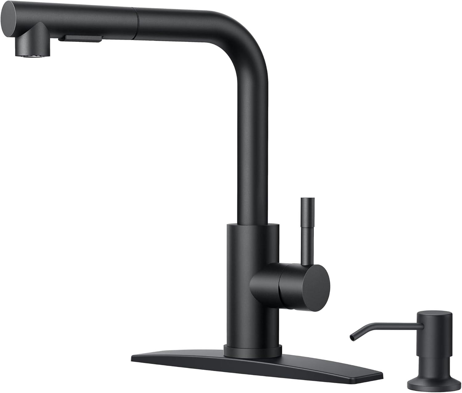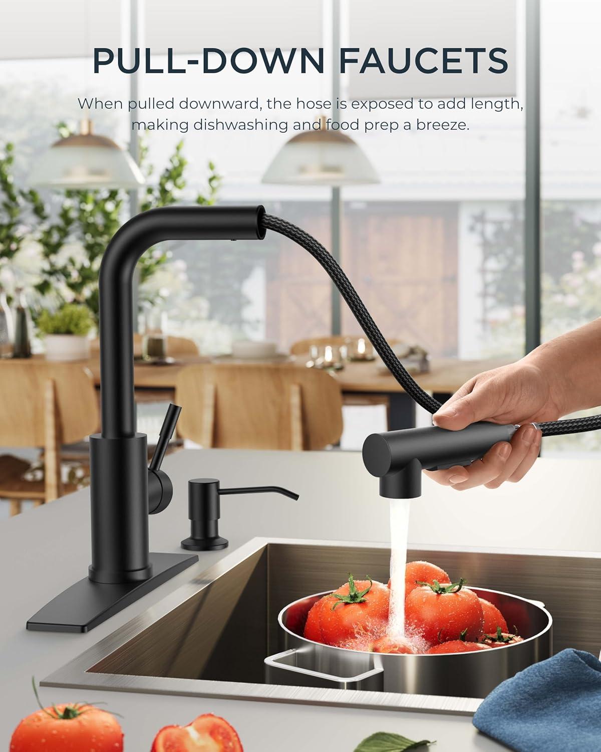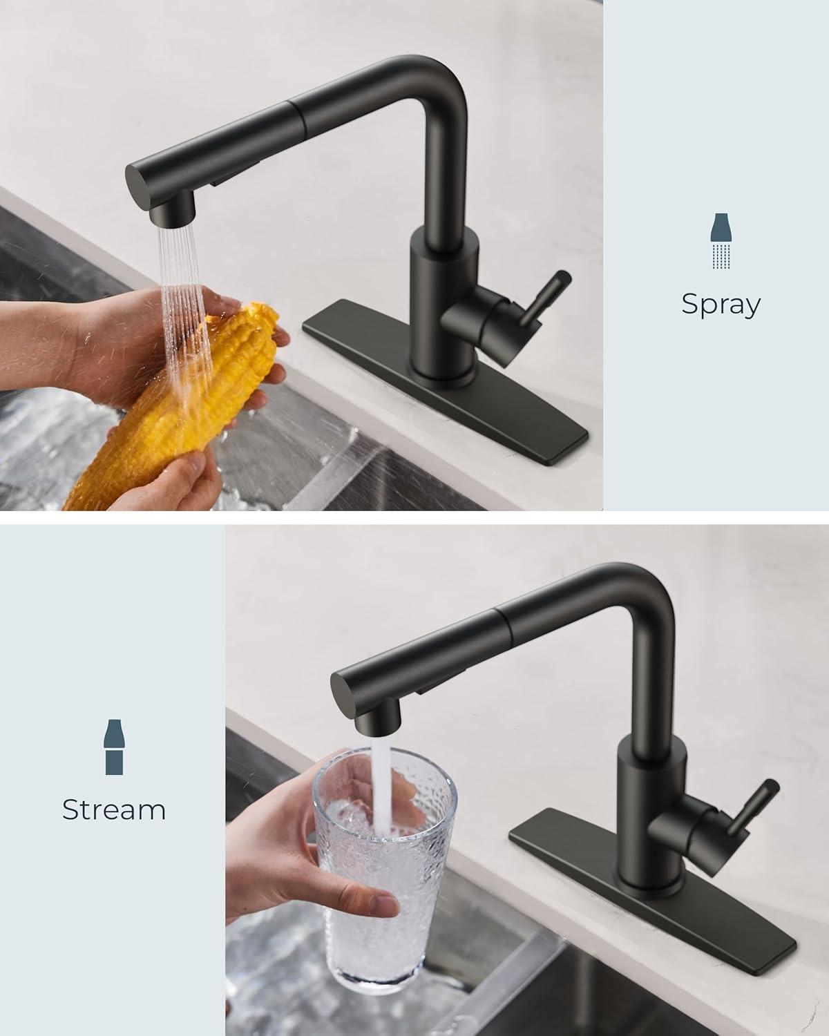 Versatile Control: Our kitchen faucet with pull down sprayer offers tailored water flow with two modes: Stream and Spray for everyday tasks, and a single handle for precise control over temperature and volume