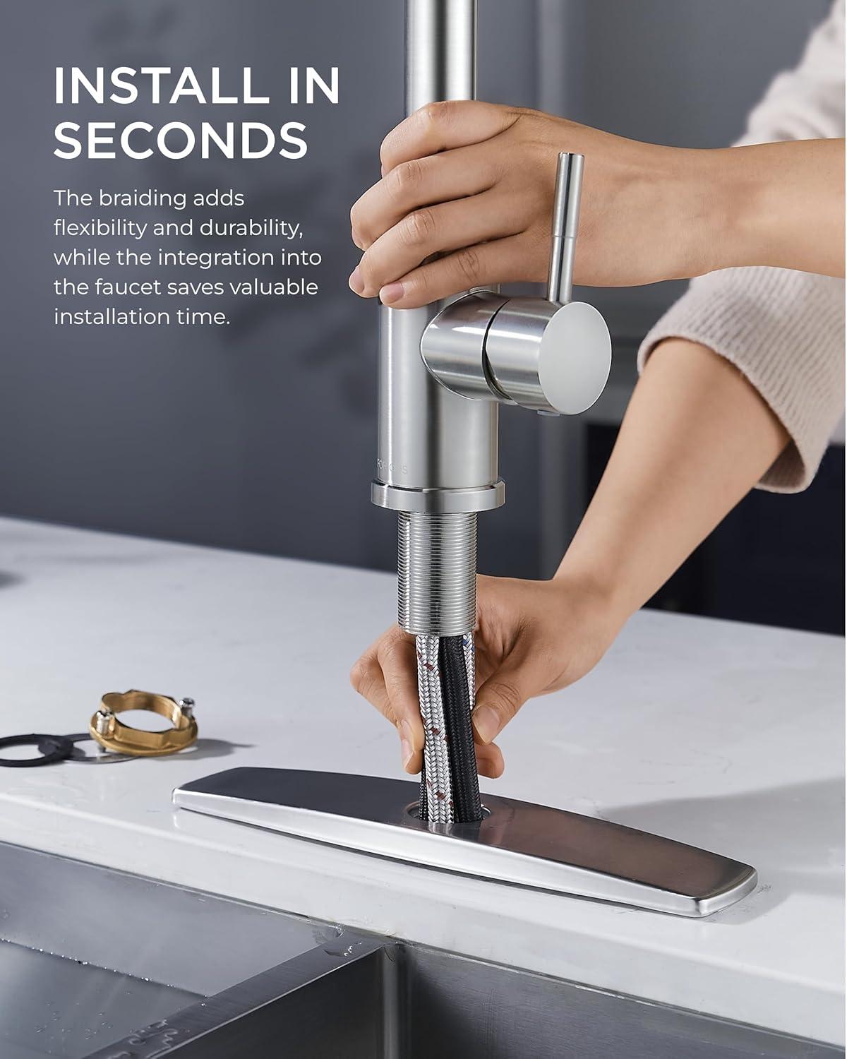 Easy to Installation: Install our kitchen faucet with sprayer in under 15 minutes without professional help. All mounting hardware is included for a hassle-free setup, making the process efficient and cost-effective with our user-friendly design