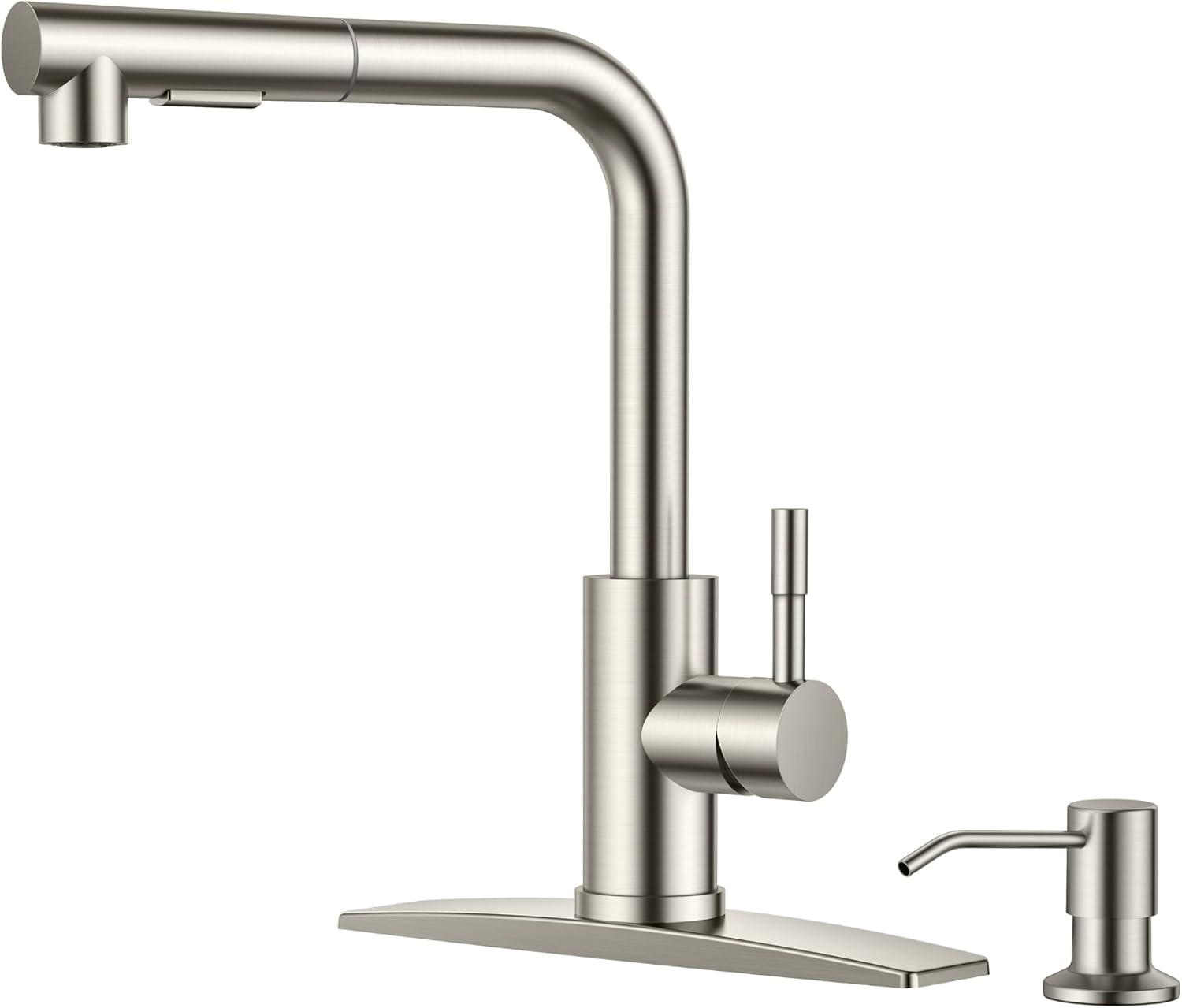 Ideal for Various Locations: This pull out kitchen faucet is compact with a height of 11.96″ and a spout height of 10.28″, it fits perfectly in any space, such as kitchen sinks, laundry rooms, RVs, bars, and more