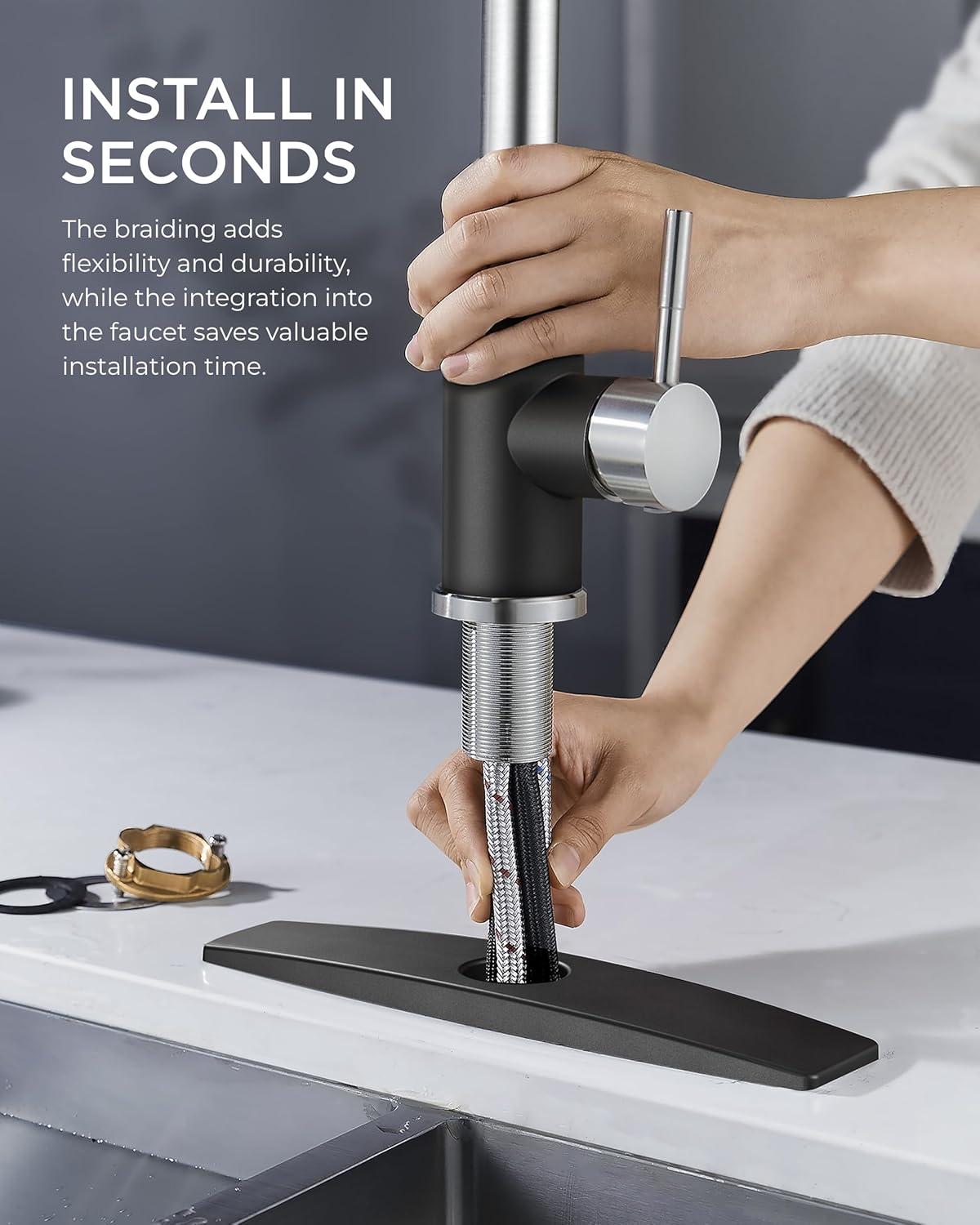 Superior Quality: Crafted from no-lead SUS 304 stainless steel, the kitchen faucet features drip-free ceramic cartridges and high-temp PEX hoses, preventing leaks and ensuring long-lasting durability and safety