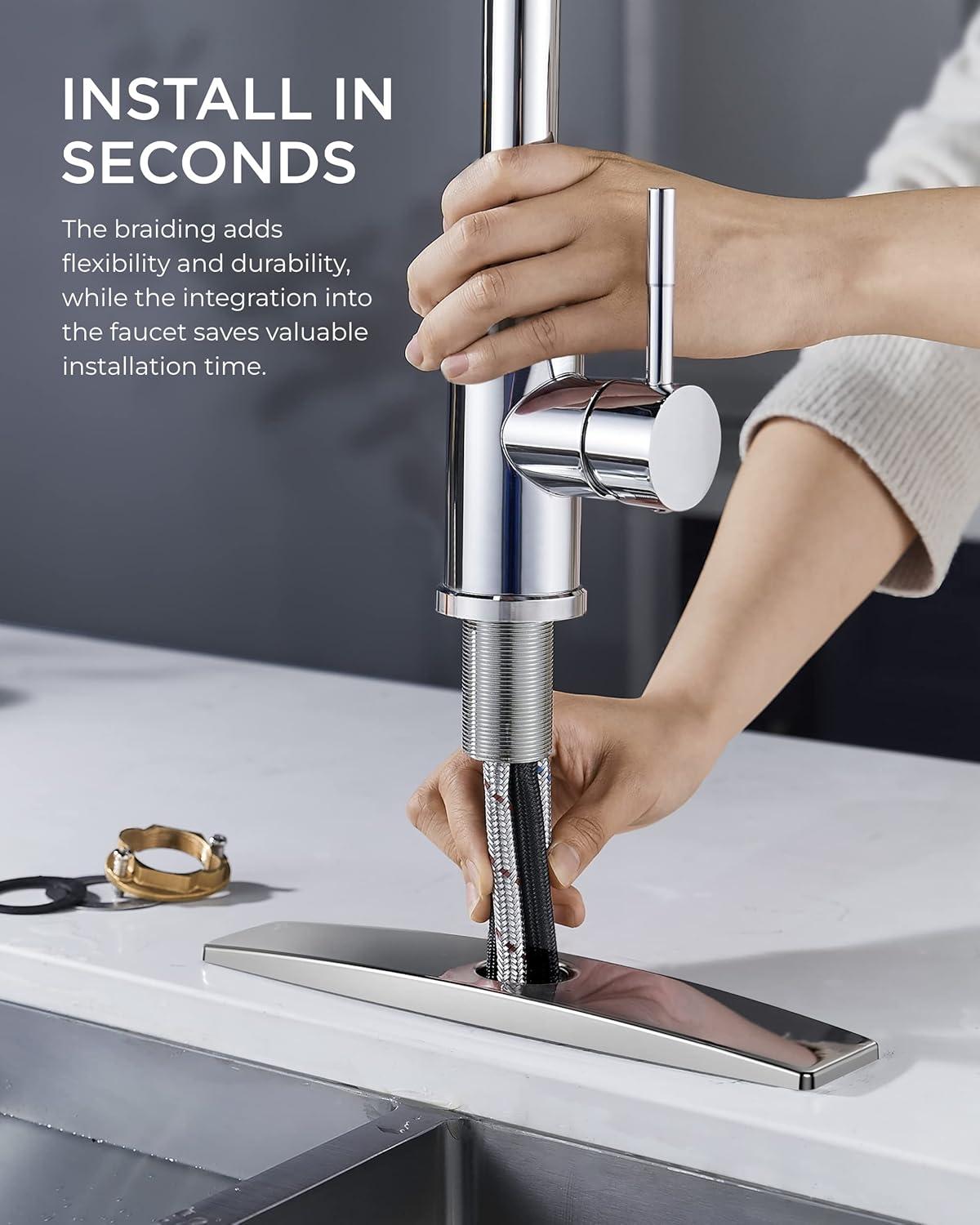 Superior Quality: Crafted from no-lead SUS 304 stainless steel, the kitchen faucet features drip-free ceramic cartridges and high-temp PEX hoses, preventing leaks and ensuring long-lasting durability and safety