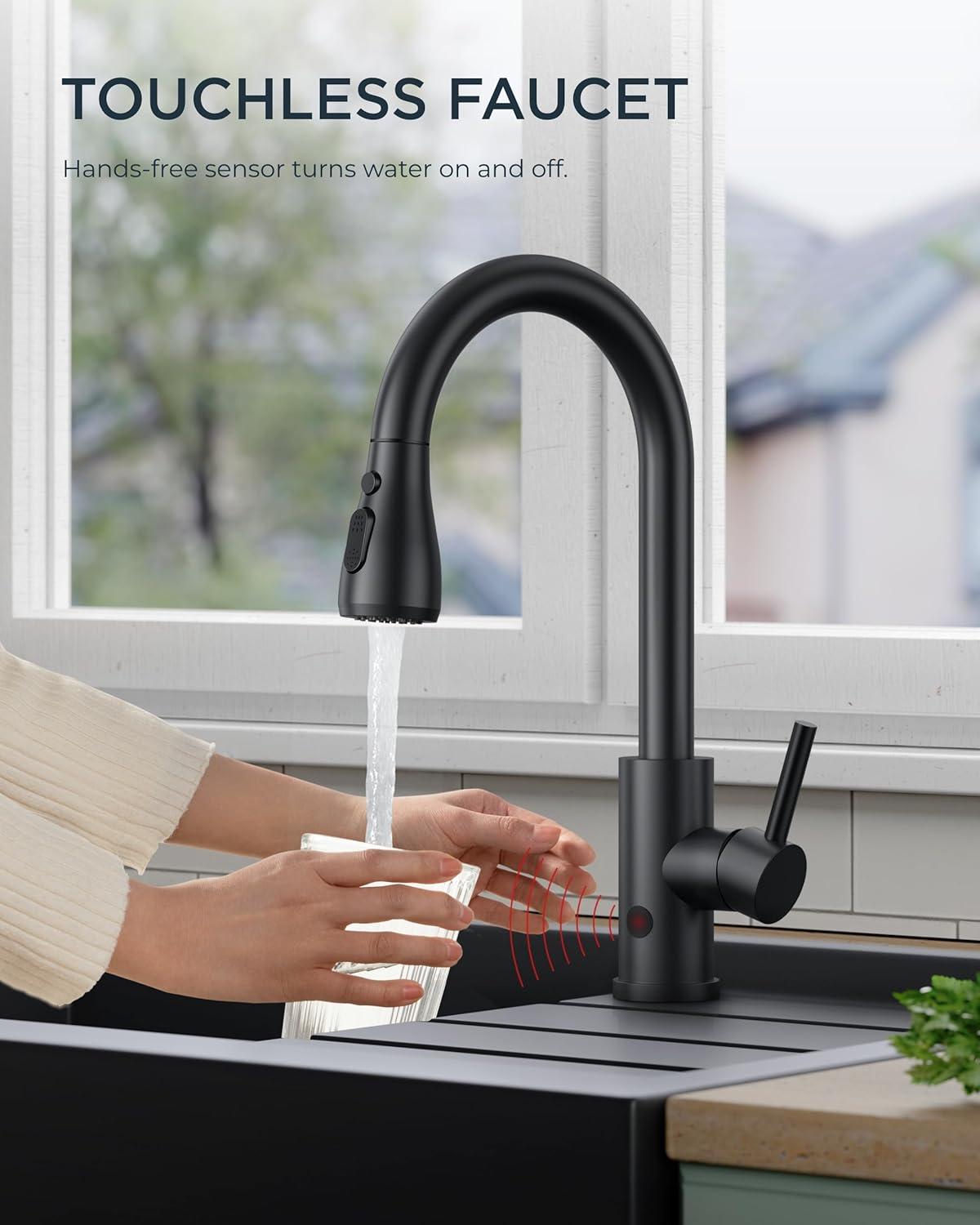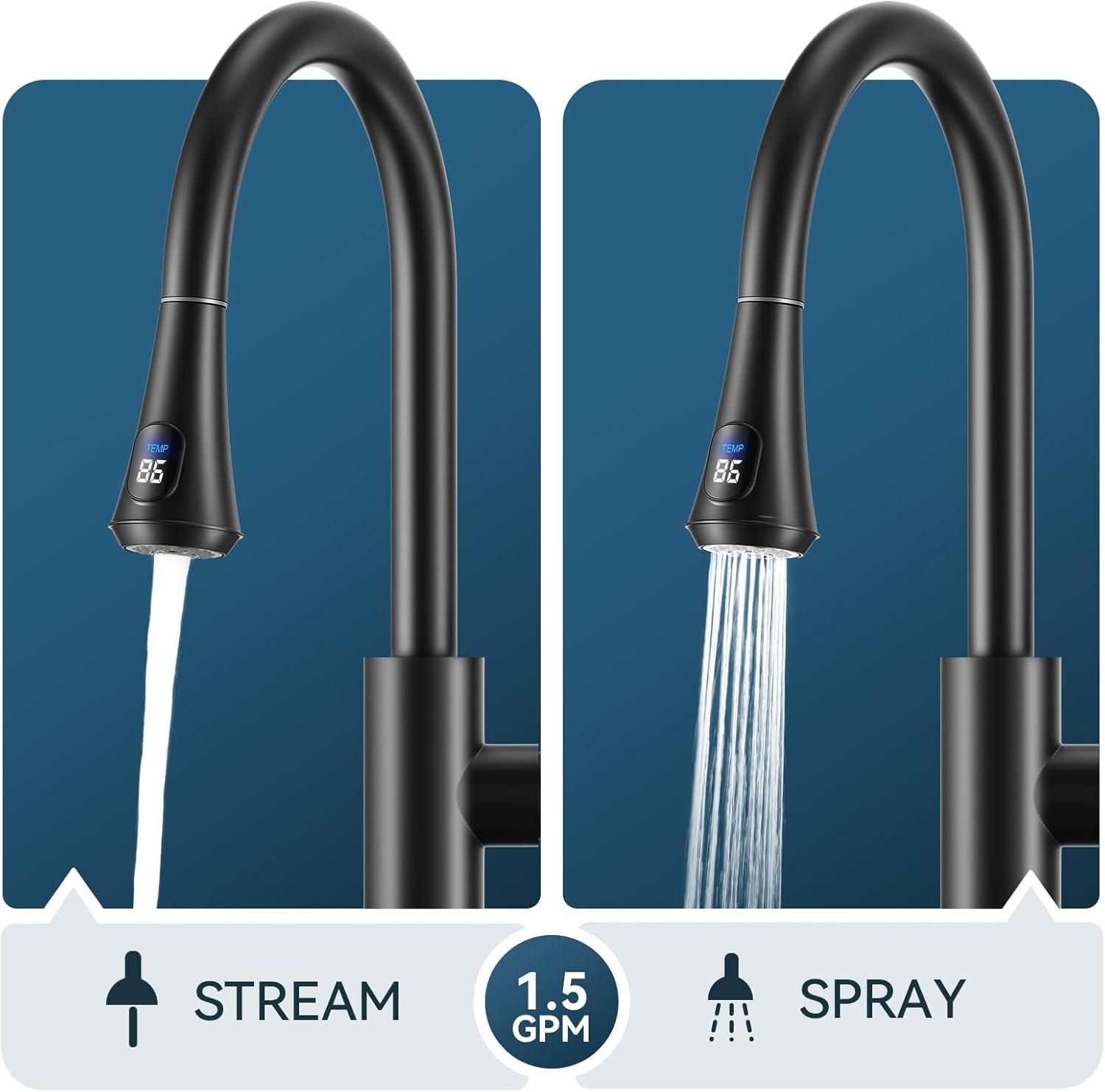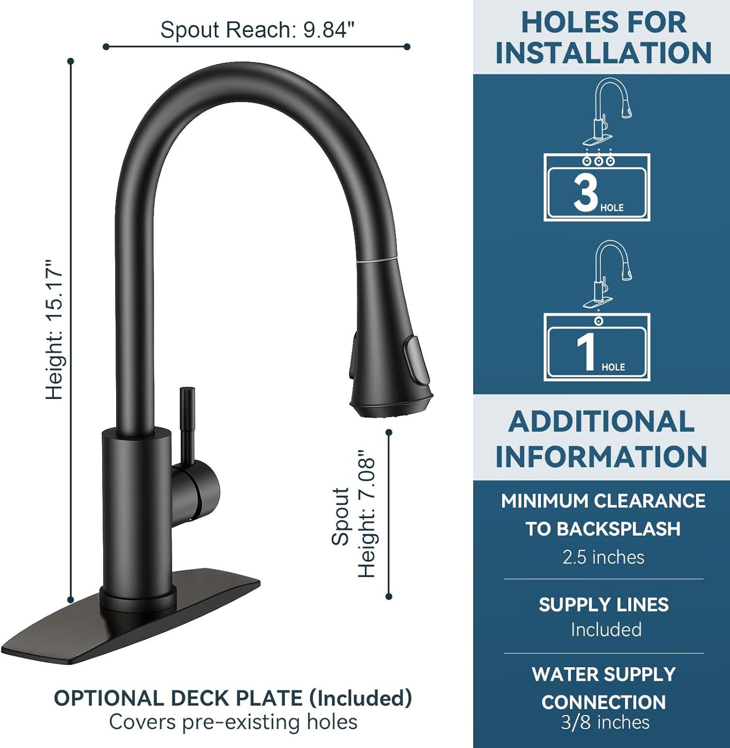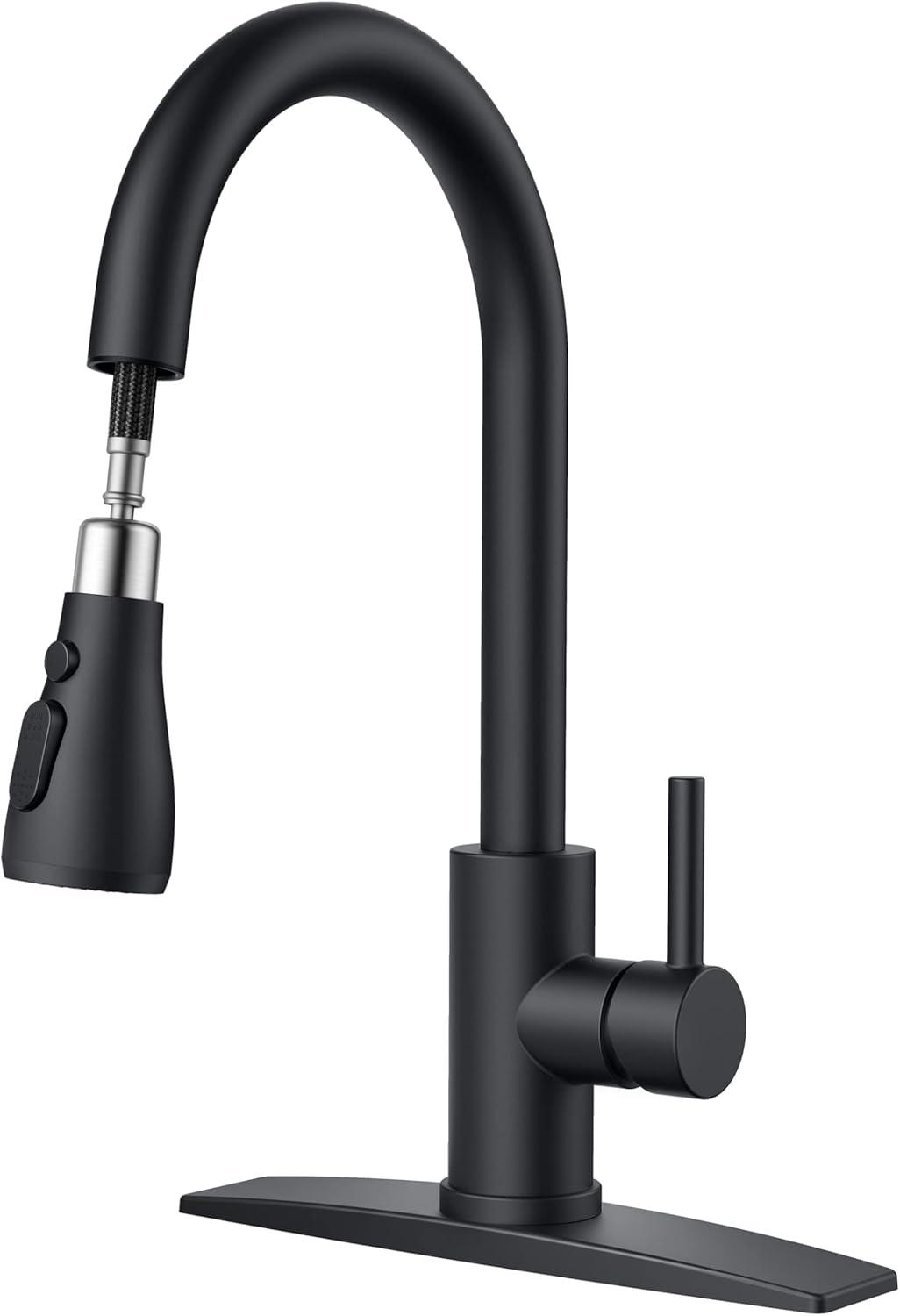 3 Spray Modes: This faucet has three settings (Stream, Spray, Pause) for various cleaning. An 18-inch retractable hose and 360° swivel spout fit single/dual sinks, offering enough space for kitchen jobs (Flow Rate: 1.8gpm/6.8L/min at Max 80psi)