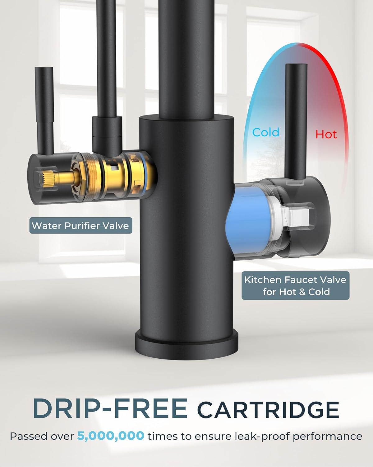 Compact & Cost-Effective: The kitchen faucet with purfied water faucet maximizes countertop space, eliminating the need for extra drilling, saves time and money.