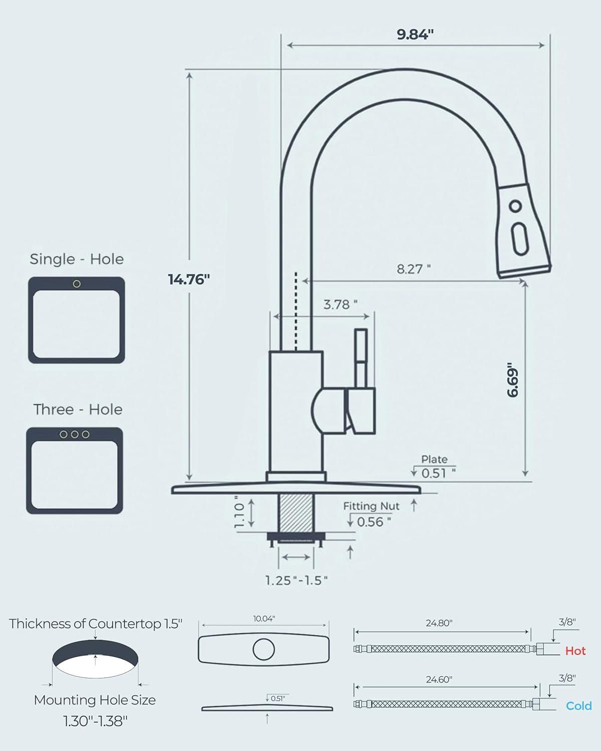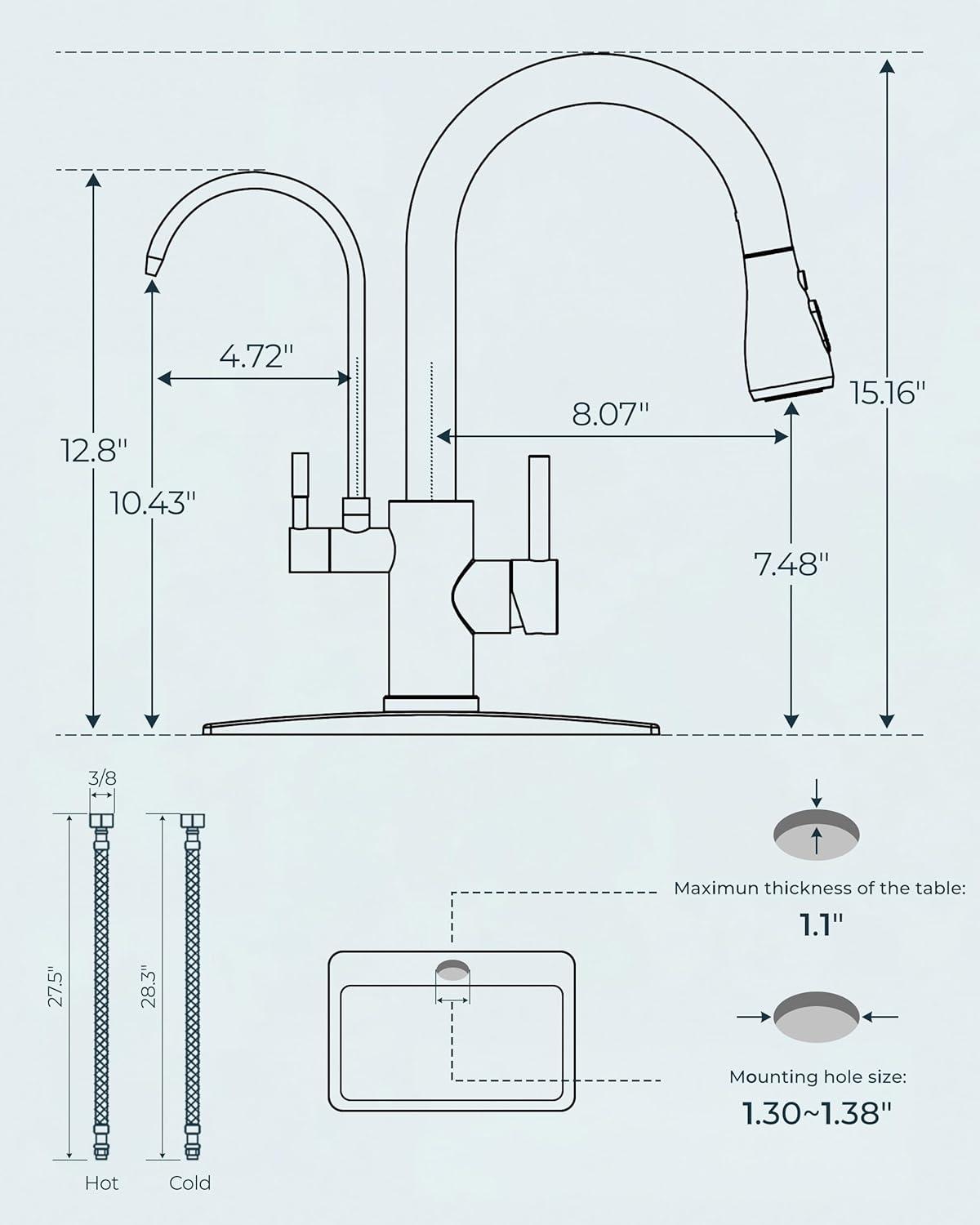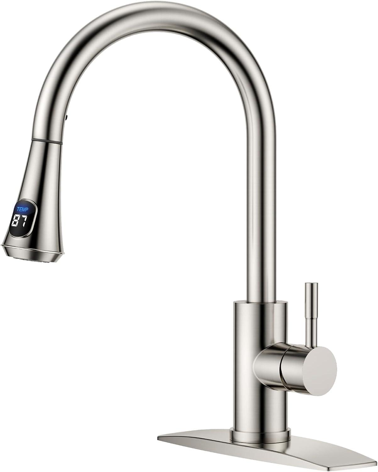 Superior Quality: Crafted from no-lead SUS 304 stainless steel, the kitchen faucet features drip-free ceramic cartridges and high-temp PEX hoses, preventing leaks and ensuring long-lasting durability and safety