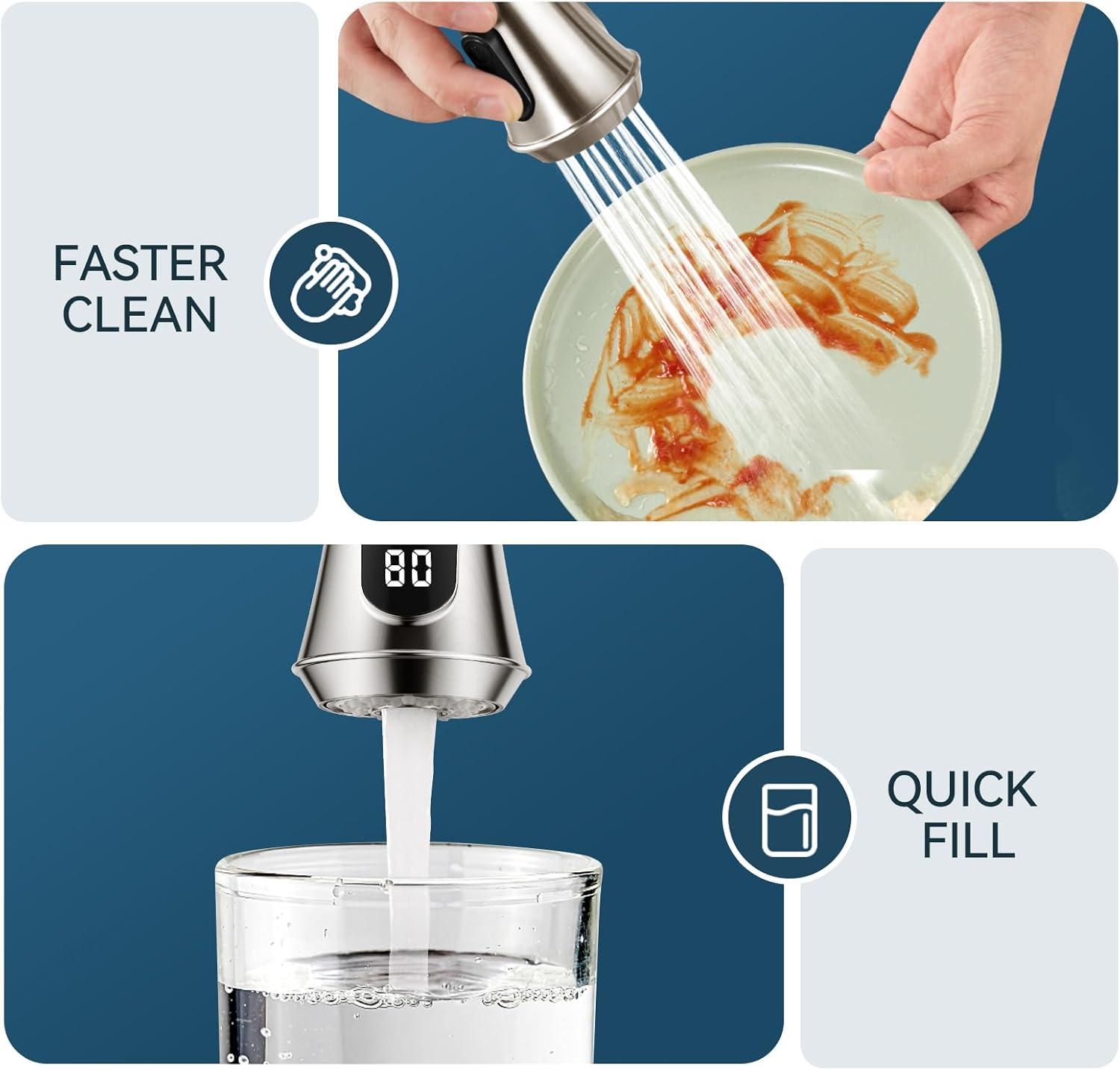 Compact & Cost-Effective: The kitchen faucet with purfied water faucet maximizes countertop space, eliminating the need for extra drilling, saves time and money.