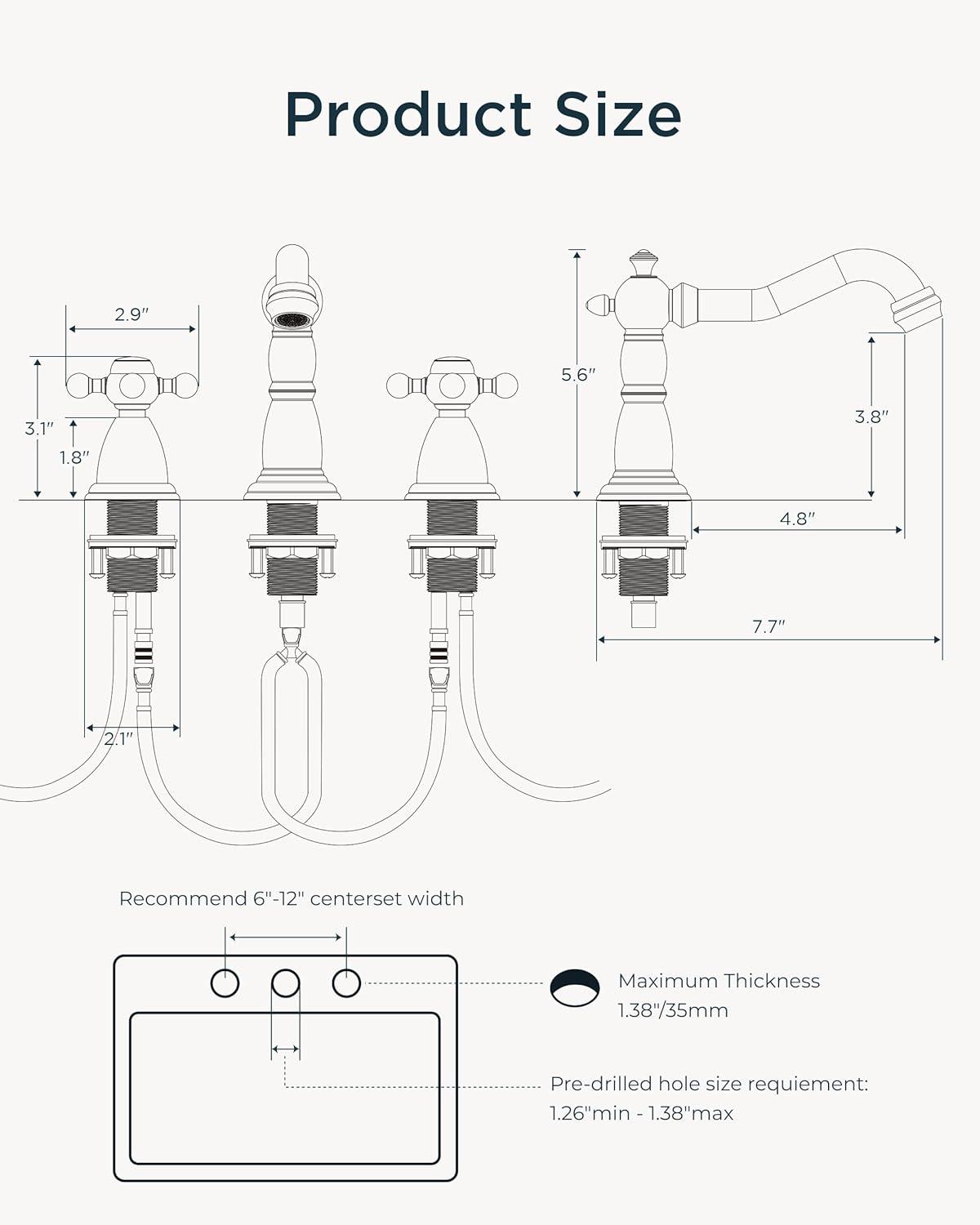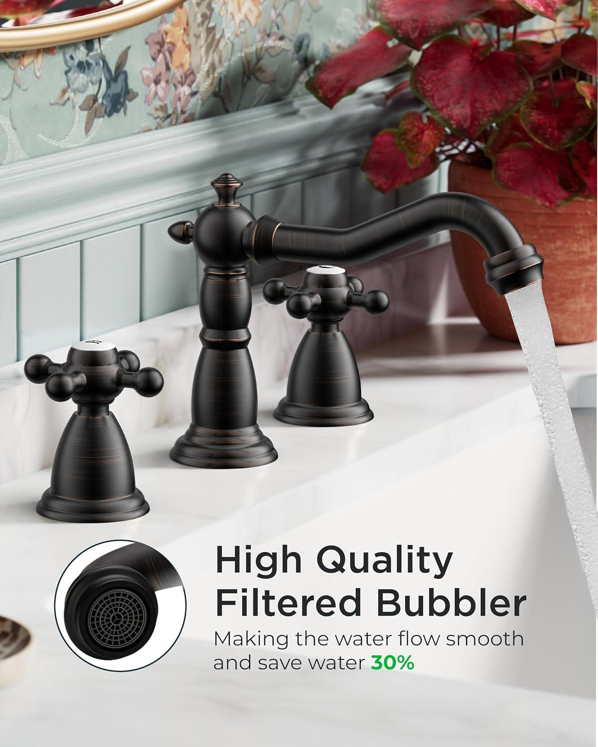 Maximum Efficiency: Cross two-handle vanity faucets 3 hole makes adjusting water flow and temperature easy. The built-in bubbling flow rate: 1.2gpm/4.5L/min at Max 60psi aerator saves 30% water and reduces splashing