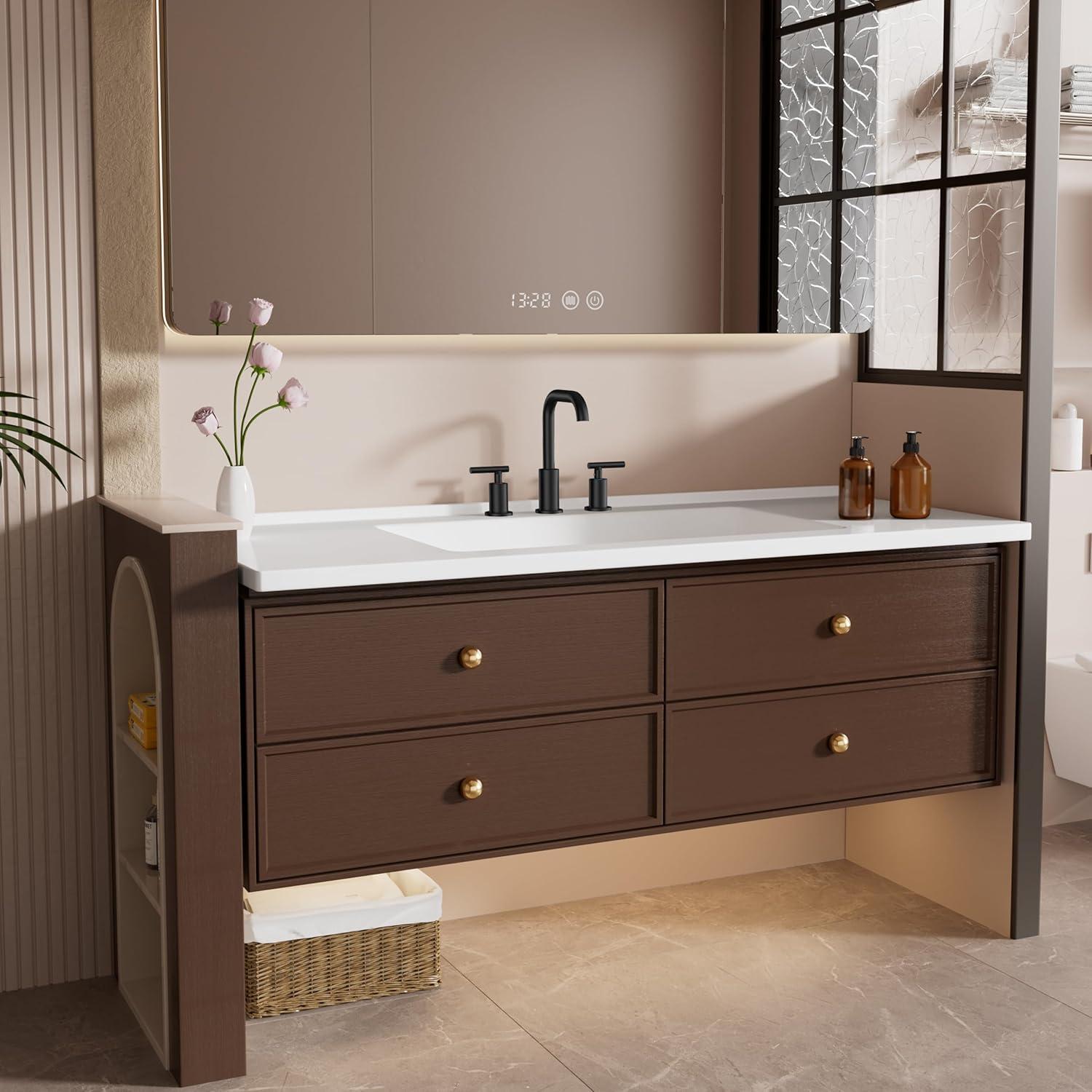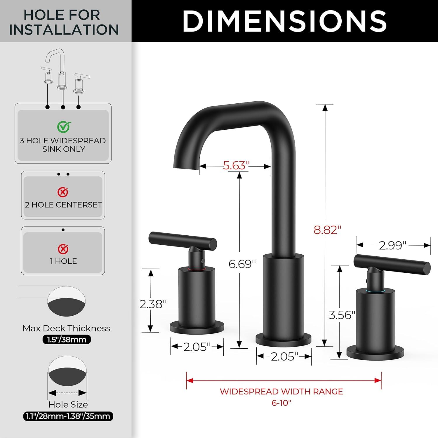 HIGH COMPATIBILITY: This widespread bathroom faucet suitable for a 3 hole 6-12 inch center sink, and the best installation effect is 6-10 inch. Payattention: If your center sink holes are less than 8 inches apart, this faucet may be larger than you expect. Please check the dimensions