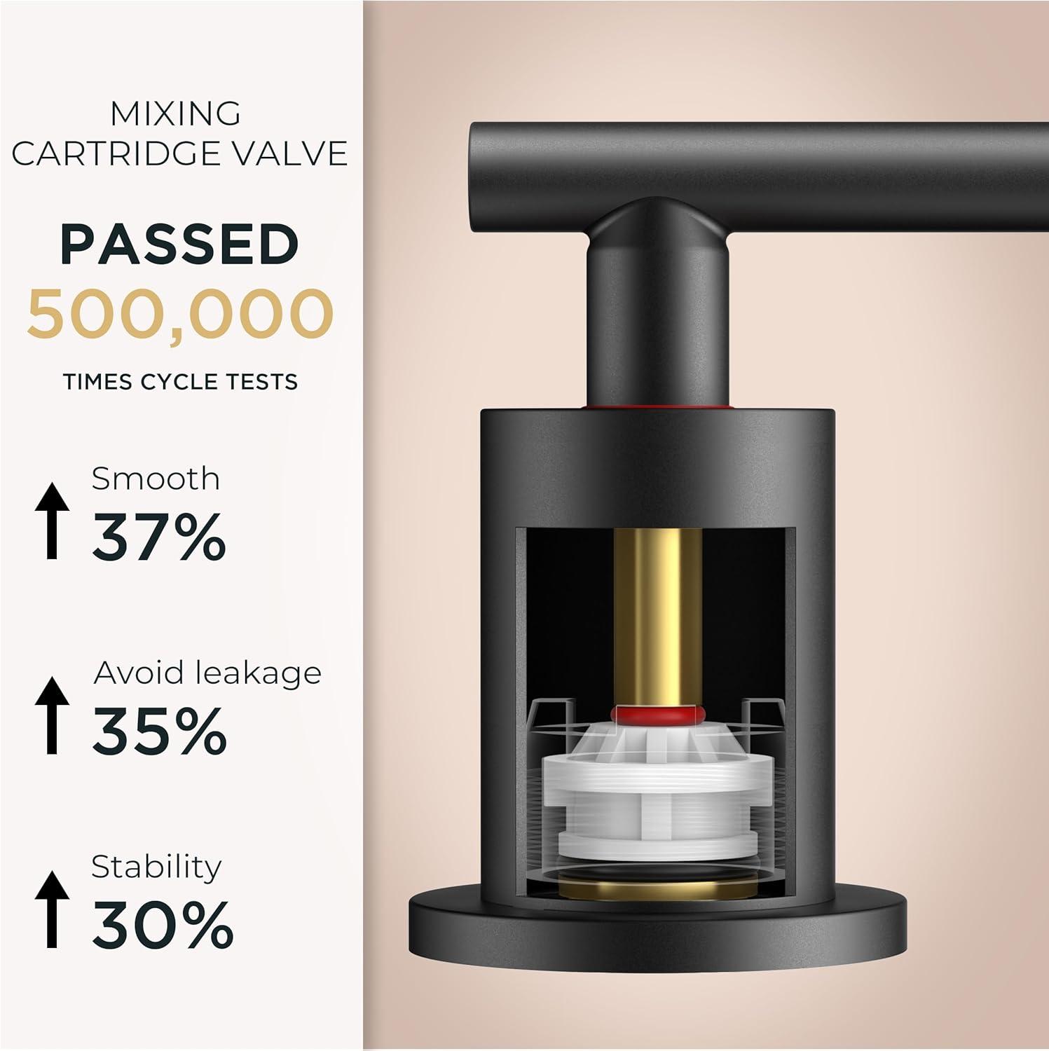 REINFORCED CORE: Forious 3 hole bathroom faucet drip-free copper&ceramic disc mixing cartridge has passed 500,000 cycles of water tightness test, to ensure high air tightness and stable, which is unaffected by temperature extremes, sand, rust, and hard water conditions