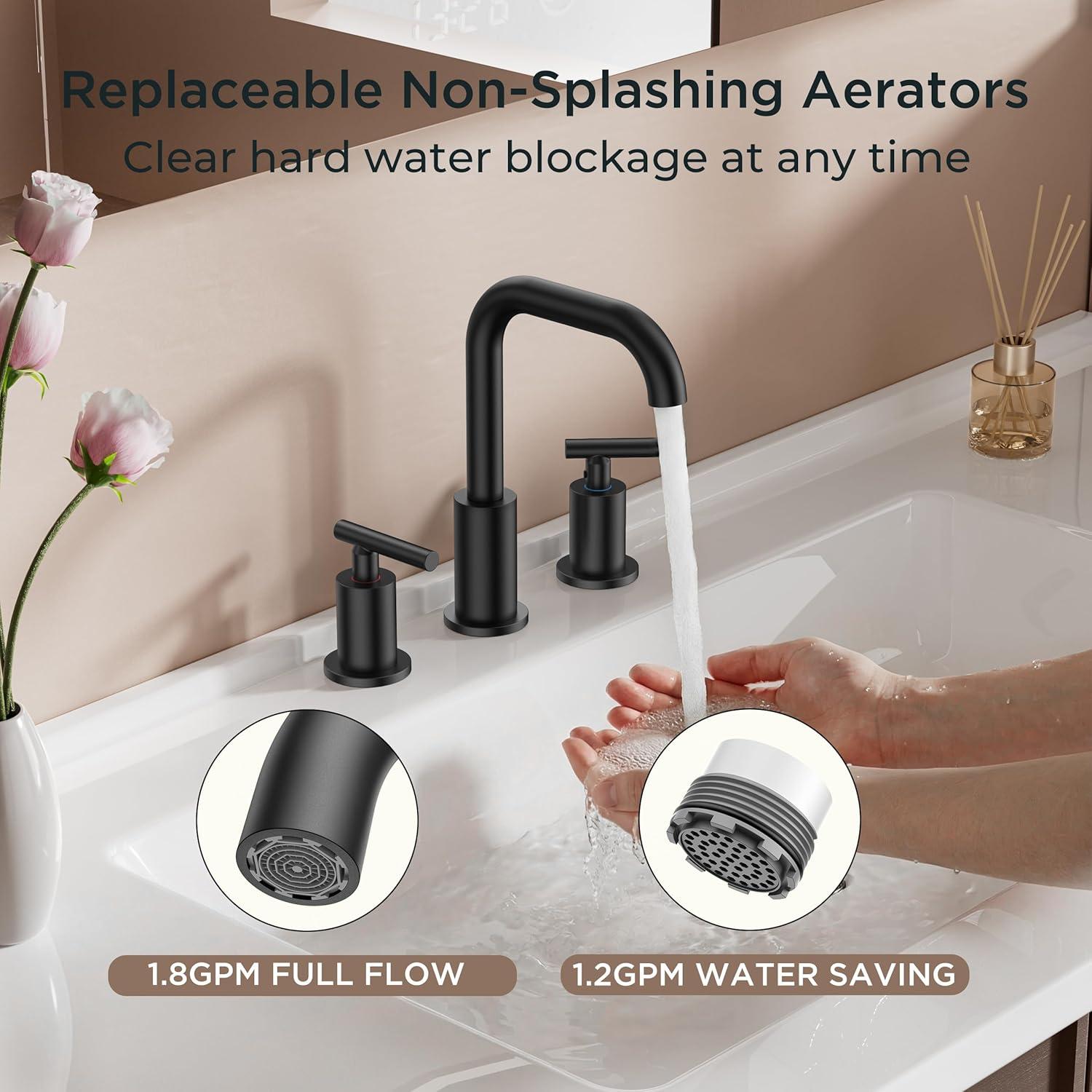 NOBLE SKIN: This black bathroom faucet is finished by elegant matte brings a calming presence to your bath, which pairs elegantly with both traditional and contemporary decor. The surface has passed the 24-hour acid salt spray test, no rust no peeling. It's easy to keep beautiful