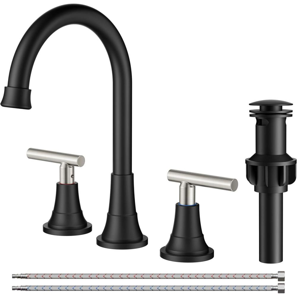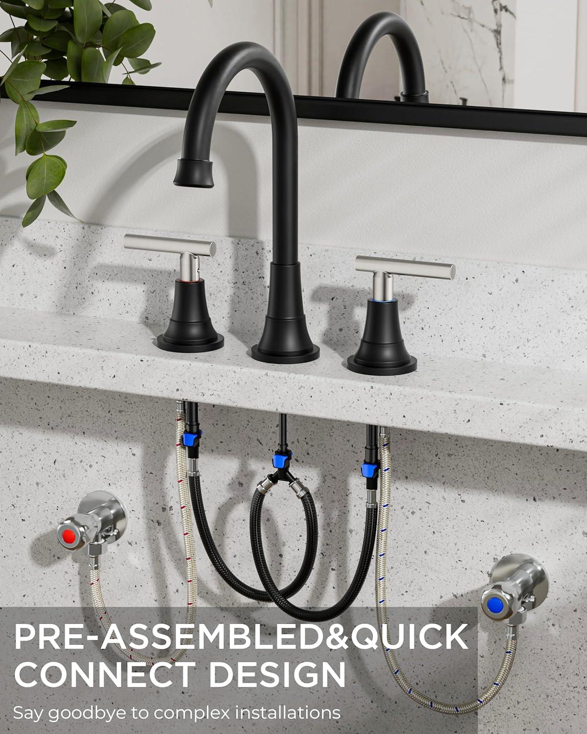 Safety and Healthy Bathroom Faucet: FORIOUS black bathroom faucet 3 hole are certified to cUPC and NSF 61 Lead-free Standards and premium material, provide safe drinking water for your daily life. Adopt rust-resistant nylon braided water supply lines, caring for your family's health. The safety and healthy bathroom sink faucet improve your life quality