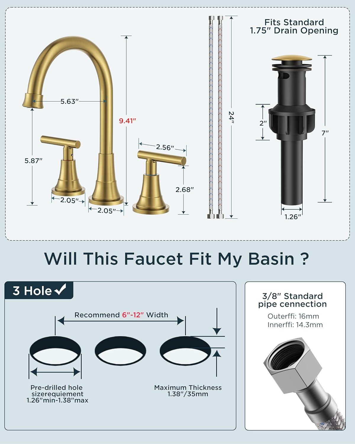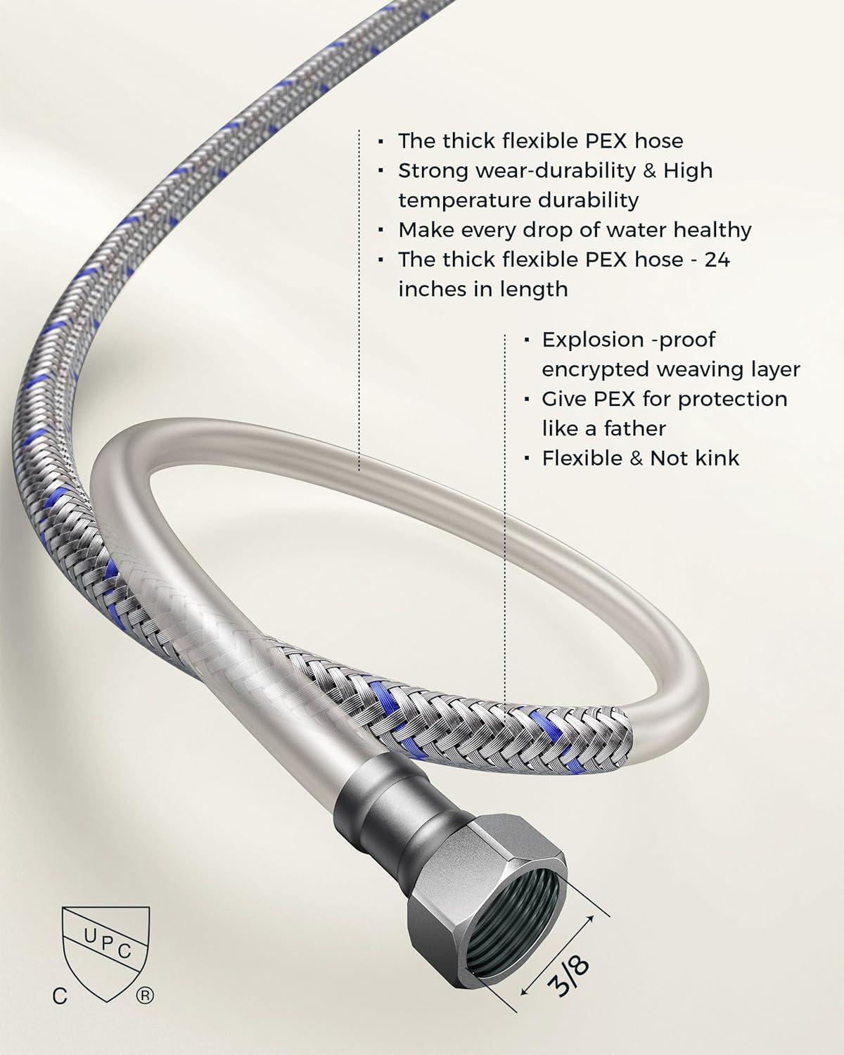 Safety and Healthy Bathroom Faucet: FORIOUS black bathroom faucet 3 hole are certified to cUPC and NSF 61 Lead-free Standards and premium material, provide safe drinking water for your daily life. Adopt rust-resistant nylon braided water supply lines, caring for your family's health. The safety and healthy bathroom sink faucet improve your life quality