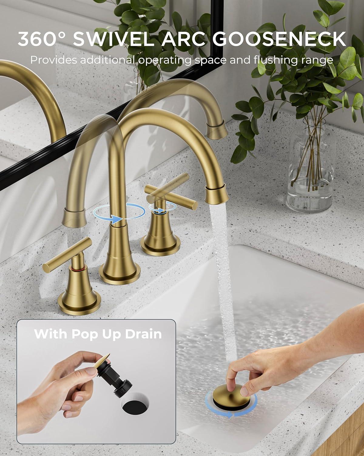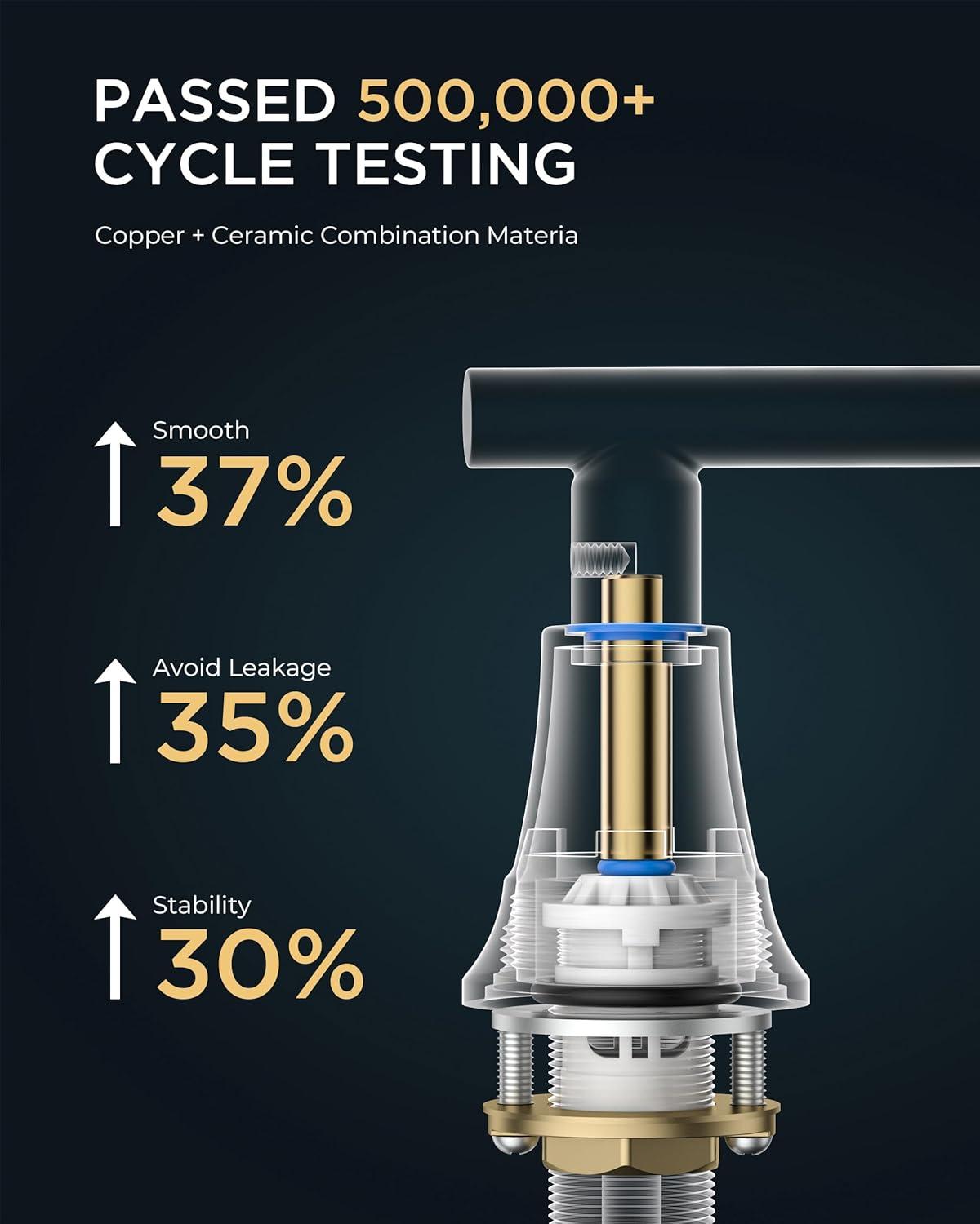 Leak-Free and Drip-Free: FORIOUS's Bathroom Faucets advanced drip-free ceramic valves tested for 500,000 times water tightness, the 2 handles allow effortless flow and water temperature control. 360-degree swivel high spout height bathroom faucets offers plenty of bathroom sink space and coverage for easy handwashing